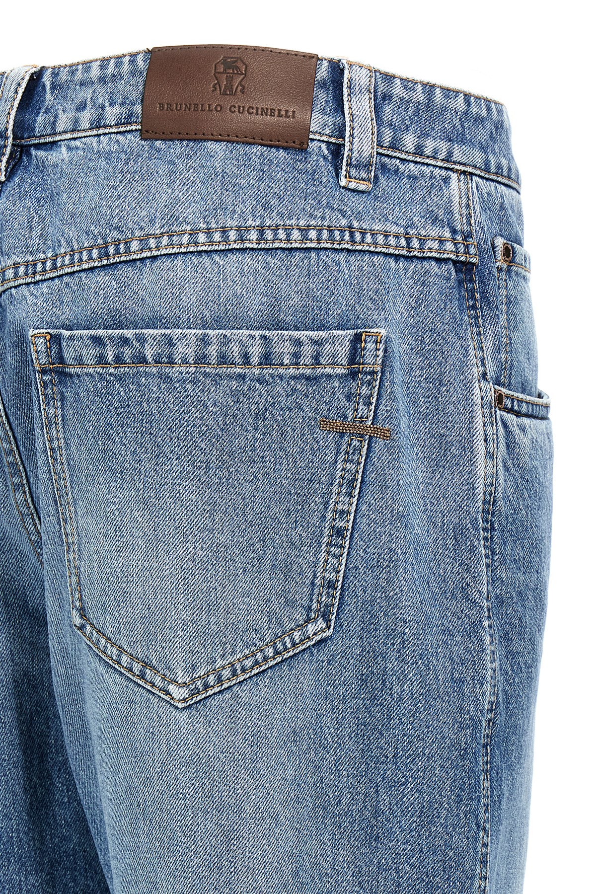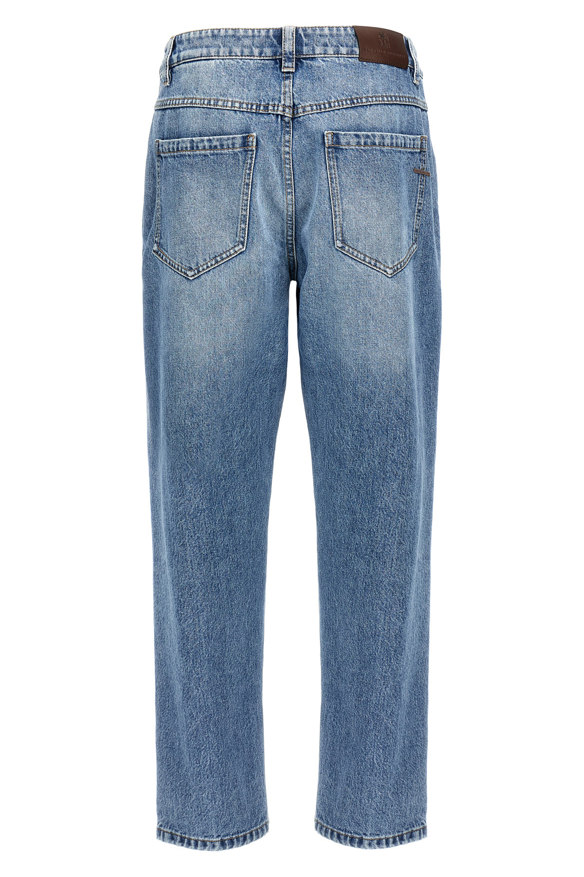 Cotton denim jeans with 'Monile' detail at the back, regular waist, straight leg, zip and button closure, five pockets, and leather logo label at the back.