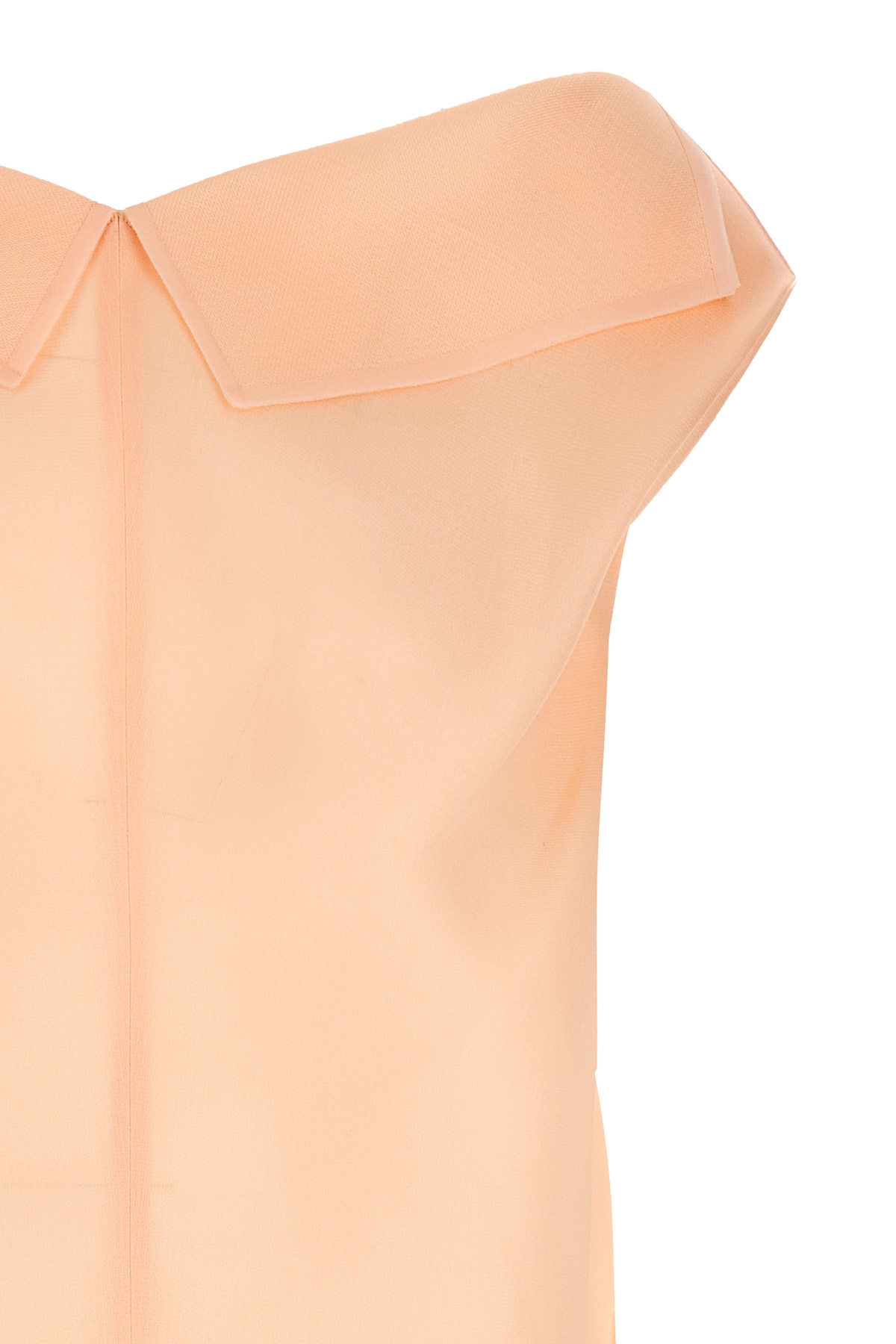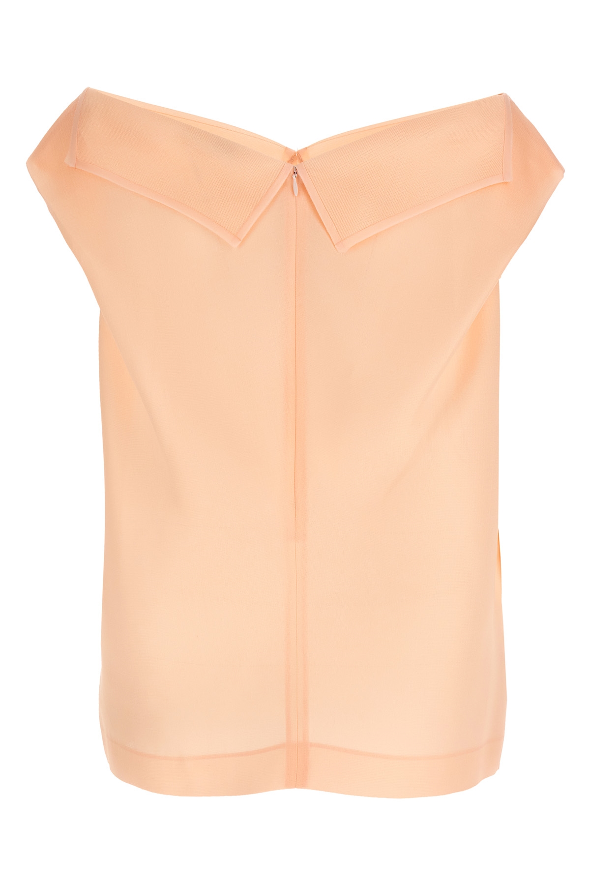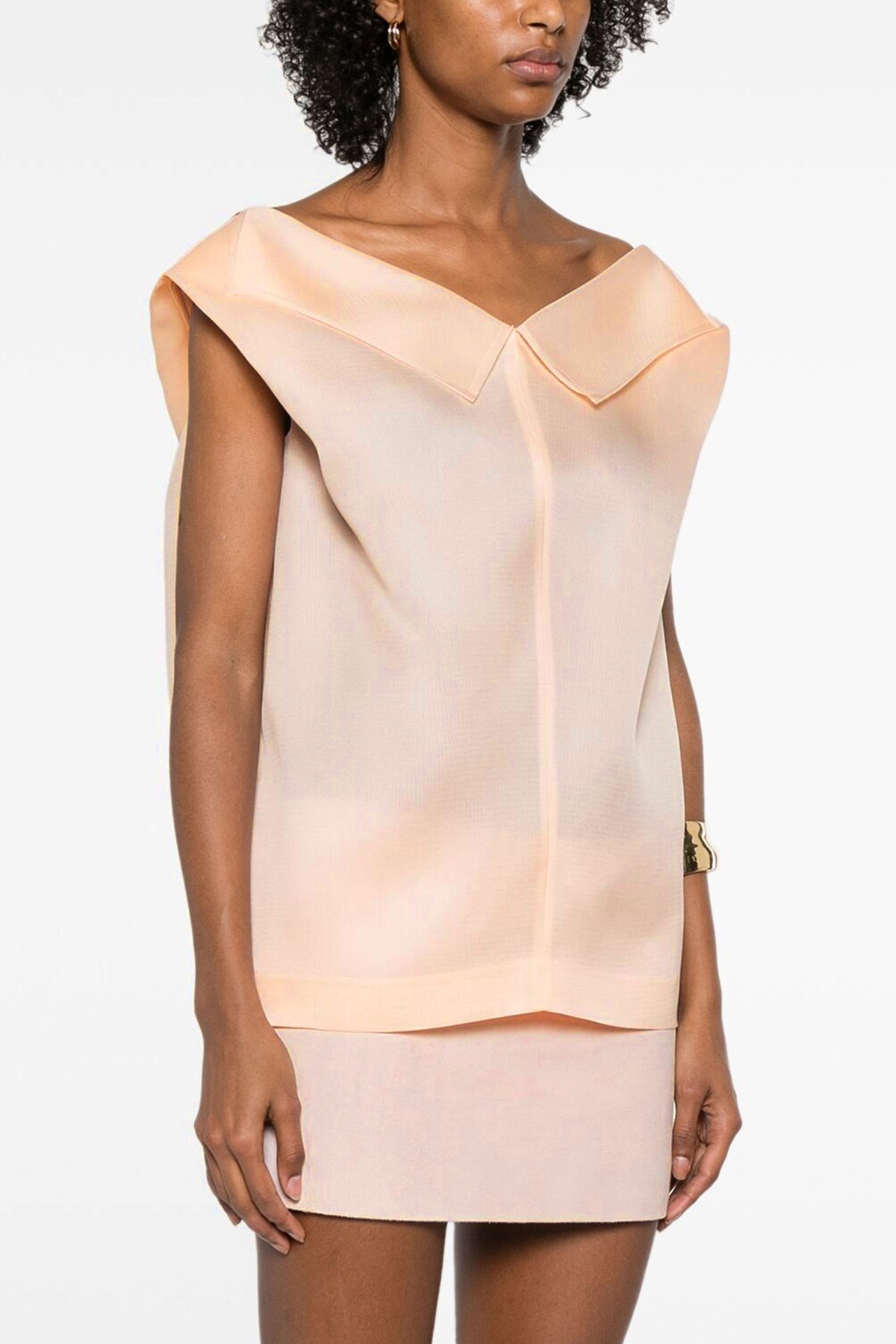 Selly' organza off-the-shoulder top with V-collar and back zip closure.