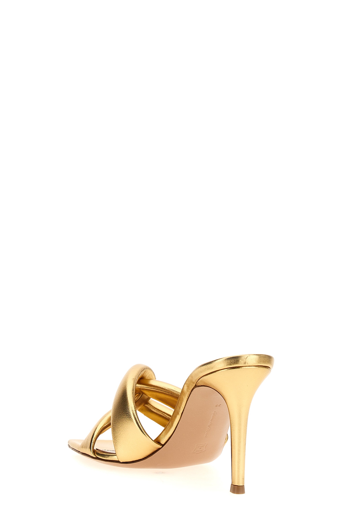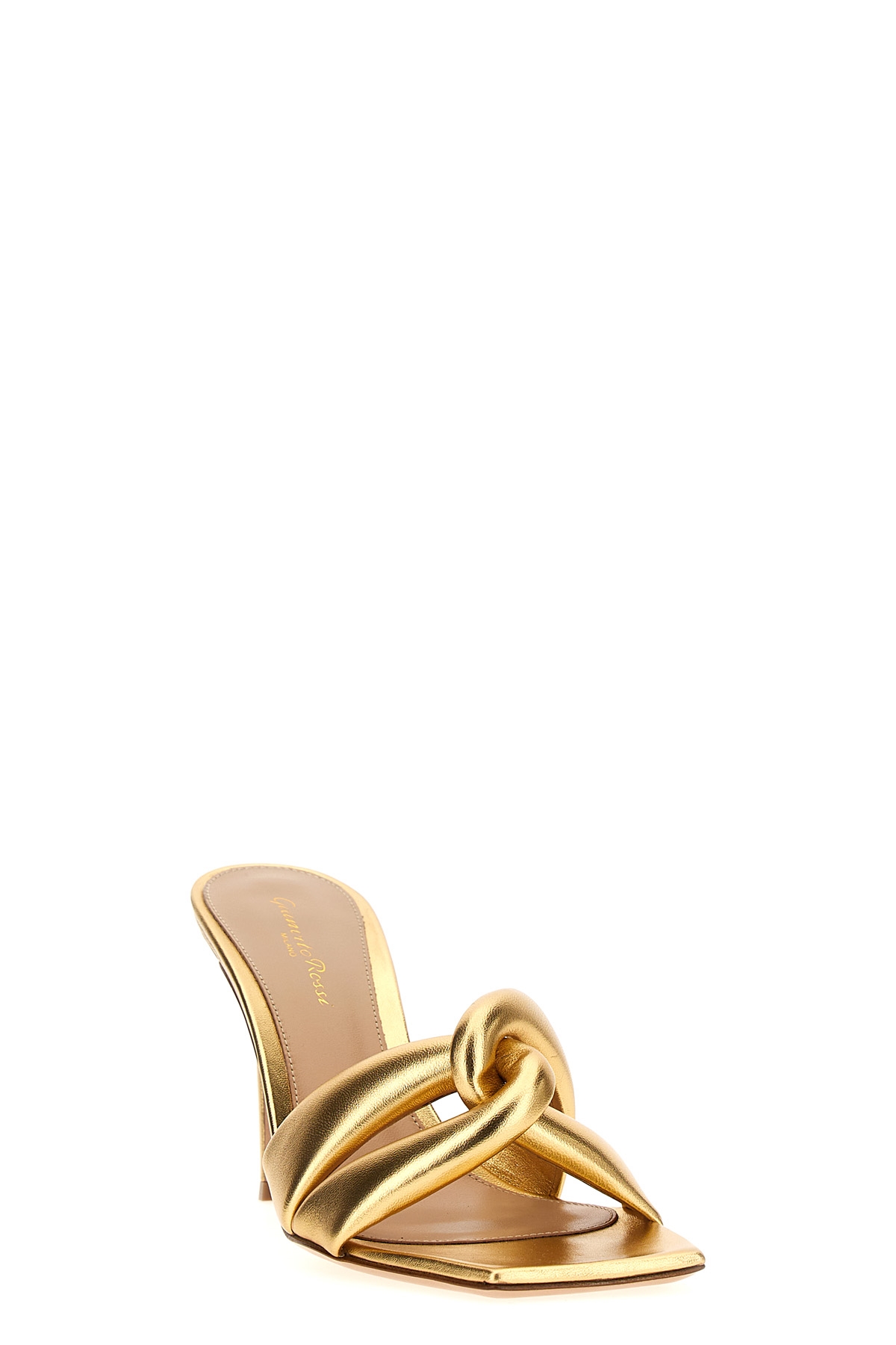 'Amour' nappa mules with front weave, square toe, heel, leather sole.