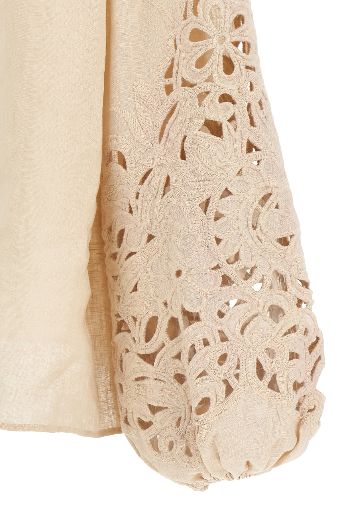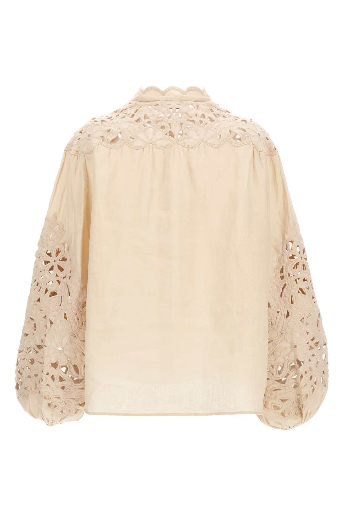 'Wylie' embroidered linen shirt with button closure, allto collar, long sleeves with elastic cuffs.