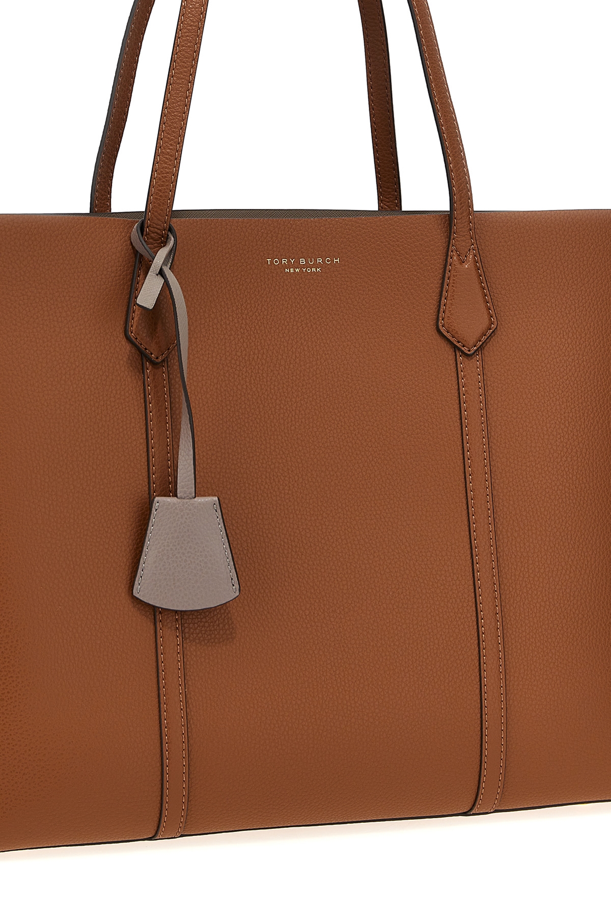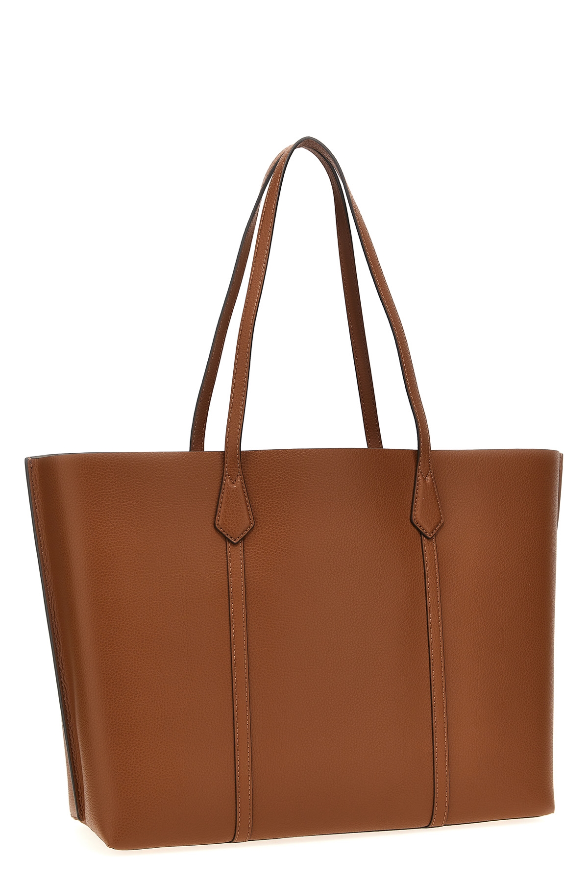 'Perry' hammered leather shopping bag, double leather handle, contrast leather logo tag, front logo print, inner compartment with zip closure.
