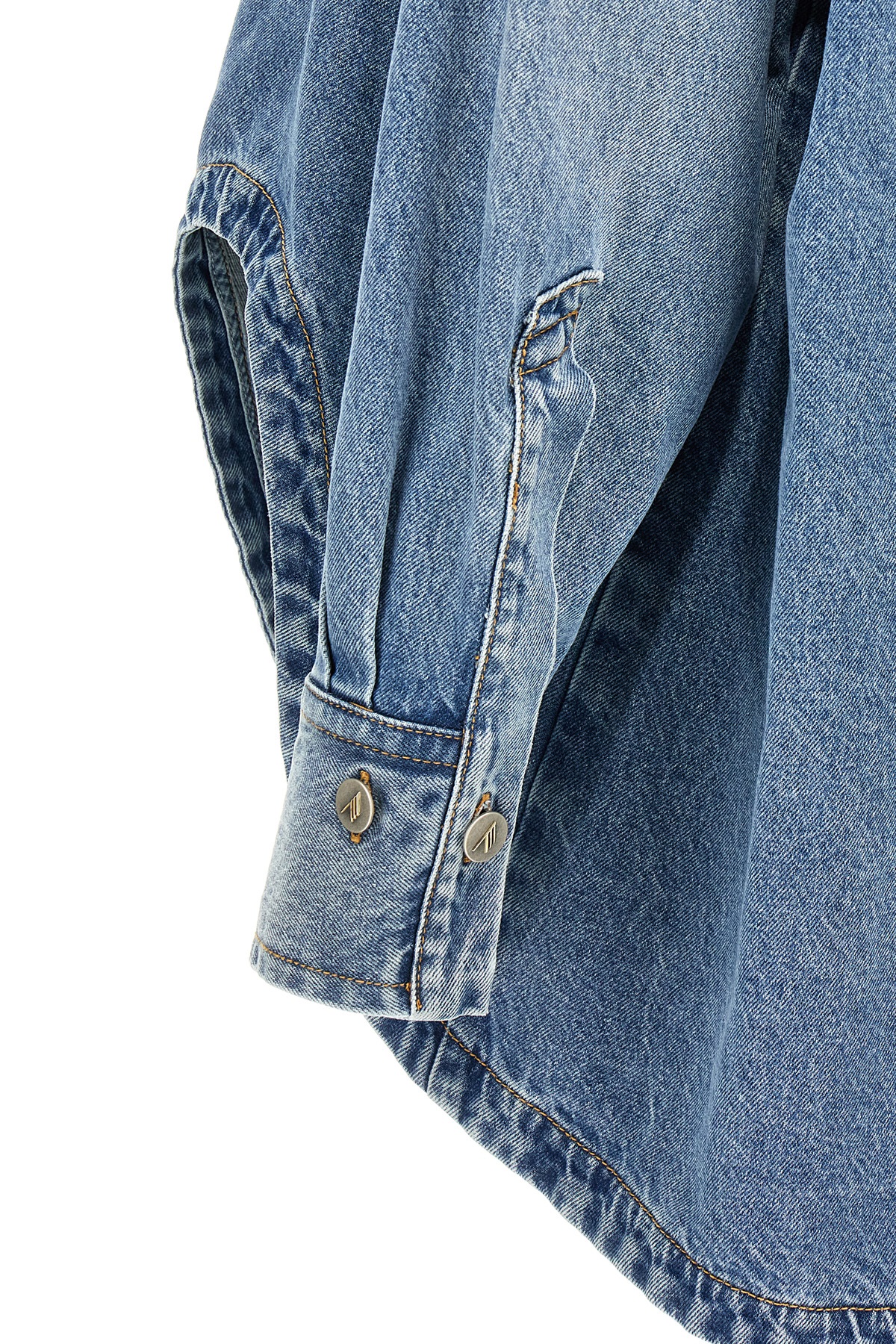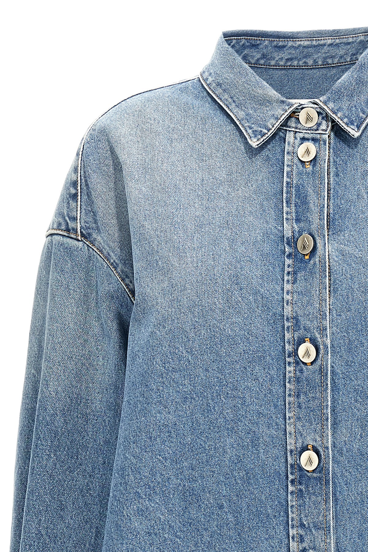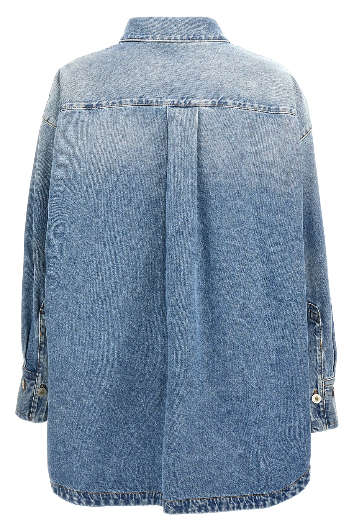 'Diana' heavy cotton denim shirt with front logo embroidery, button closure, long cuffed sleeves, front contoured split.