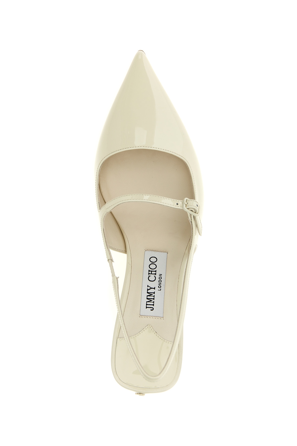 'Didi' patent leather slingbacks, adjustable instep strap, pointed toe, heel.