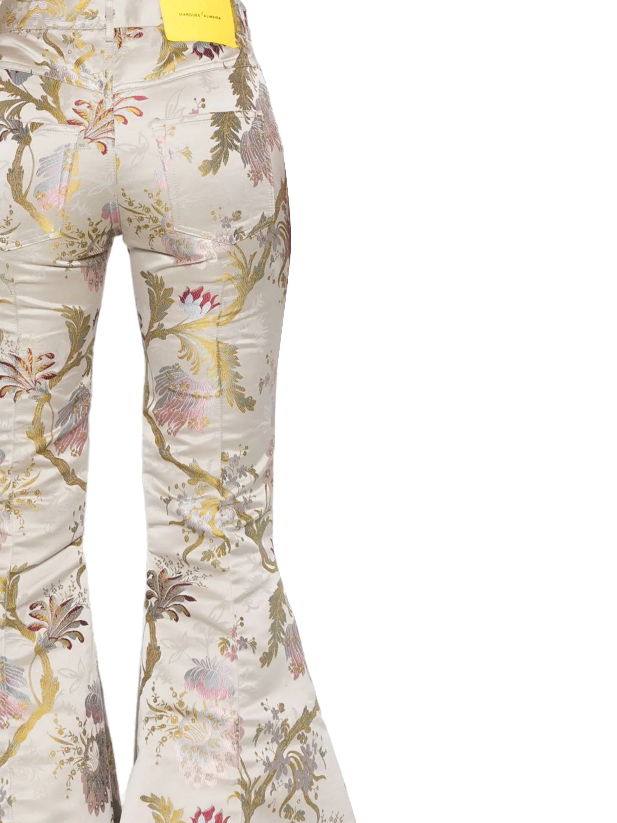 ash grey concealed fly and button fastening classic five pockets belt loops allover floral embroidery
