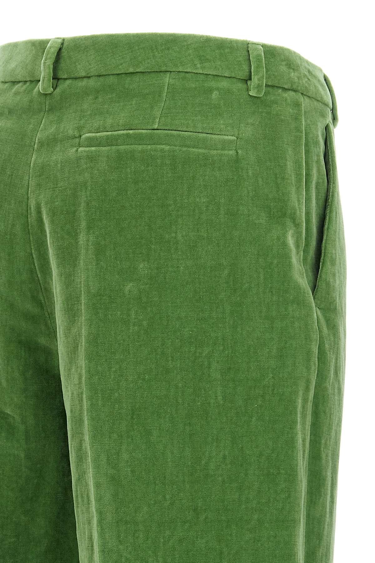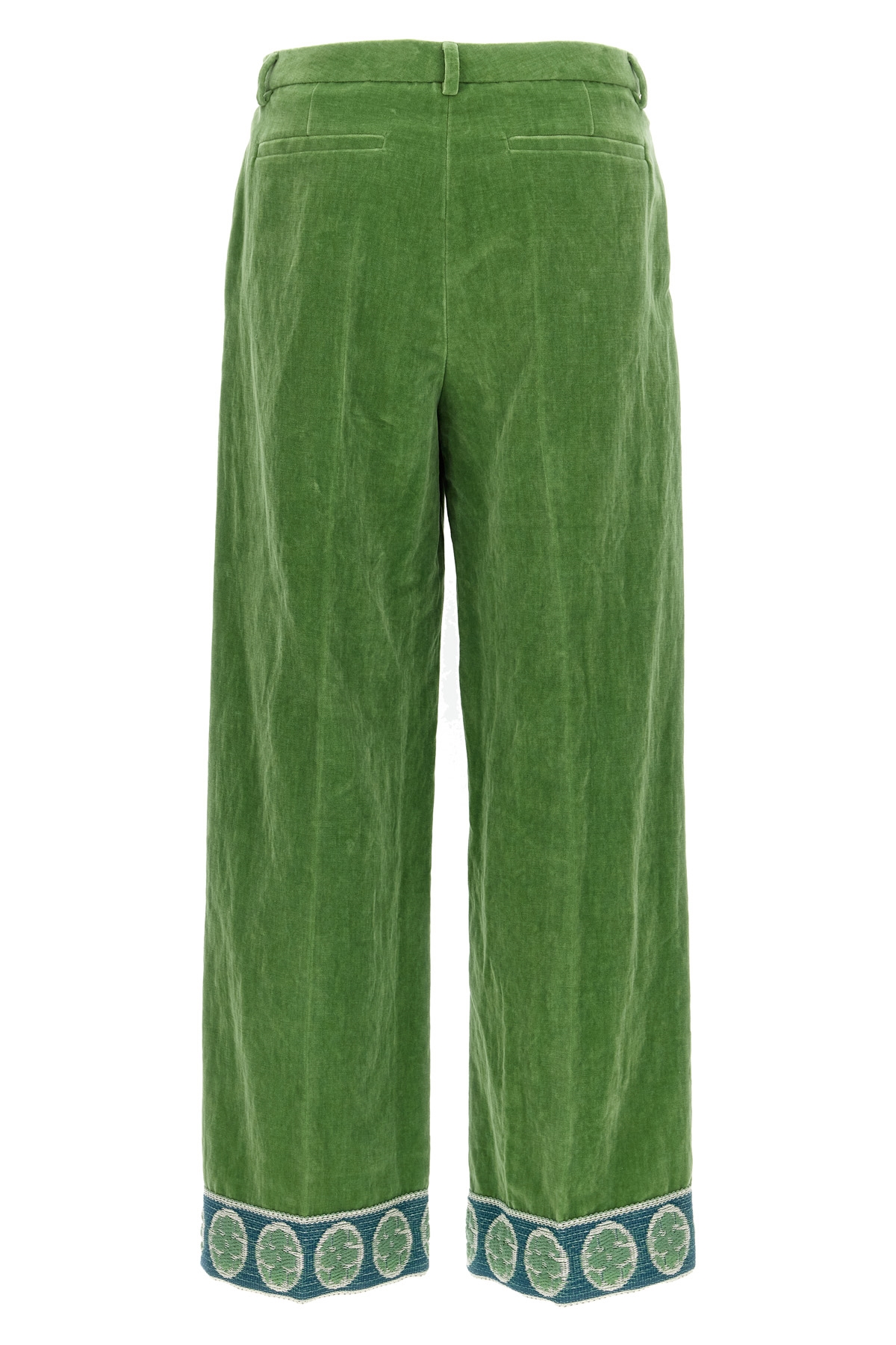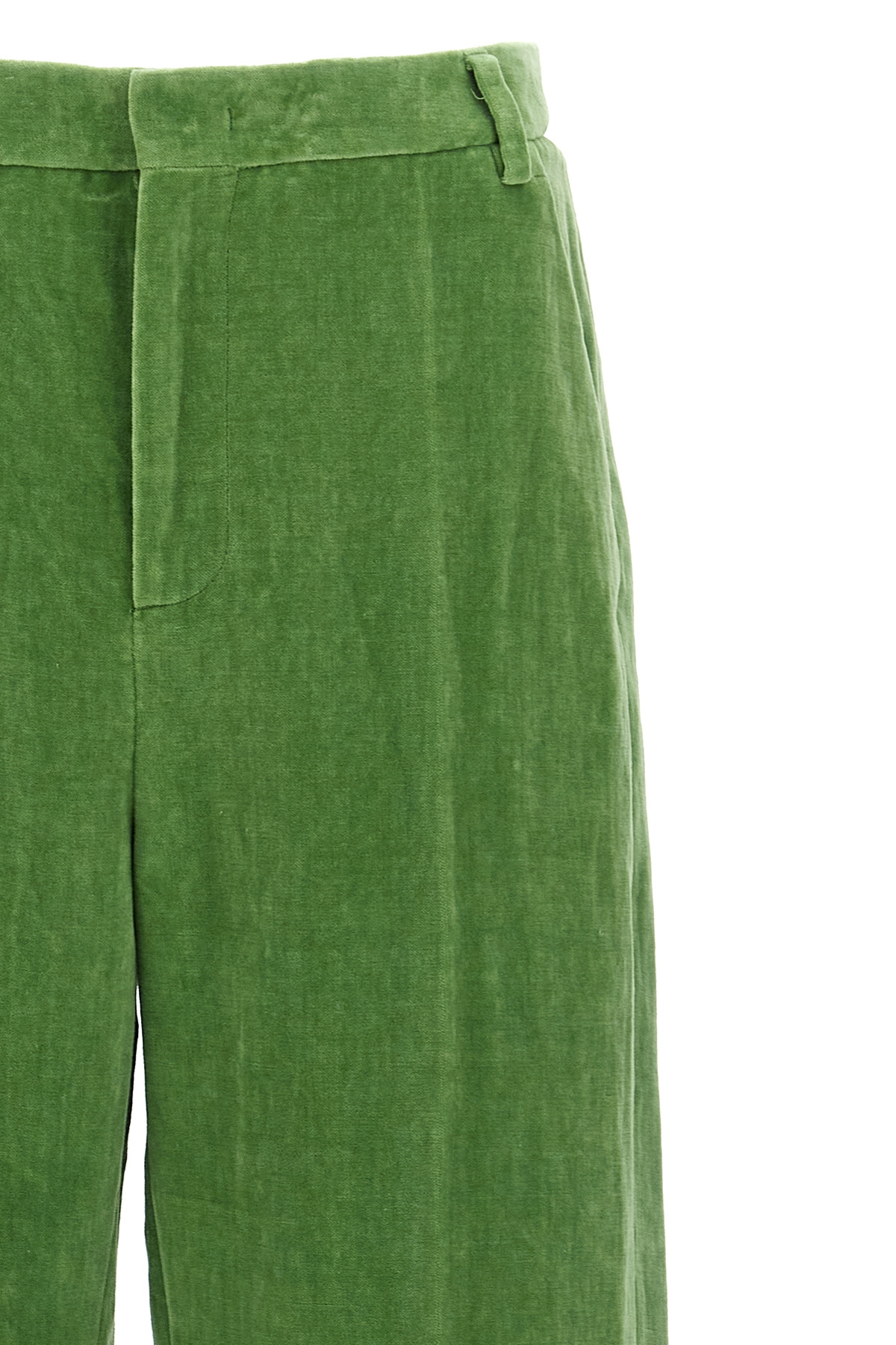 Washed cotton velvet and linen trousers with jacquard bottom, high waist and wide leg, hook and button zip closure, pockets.