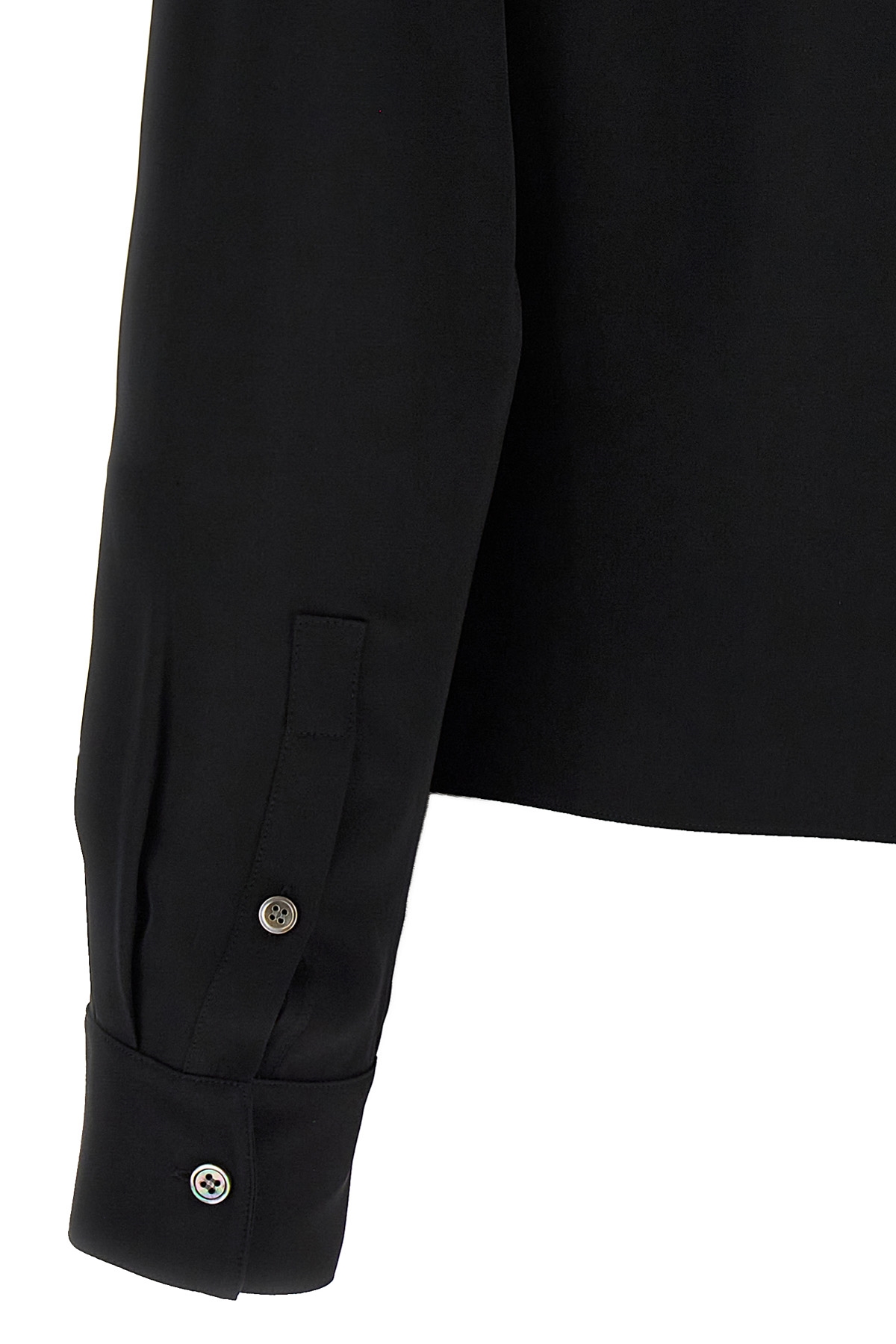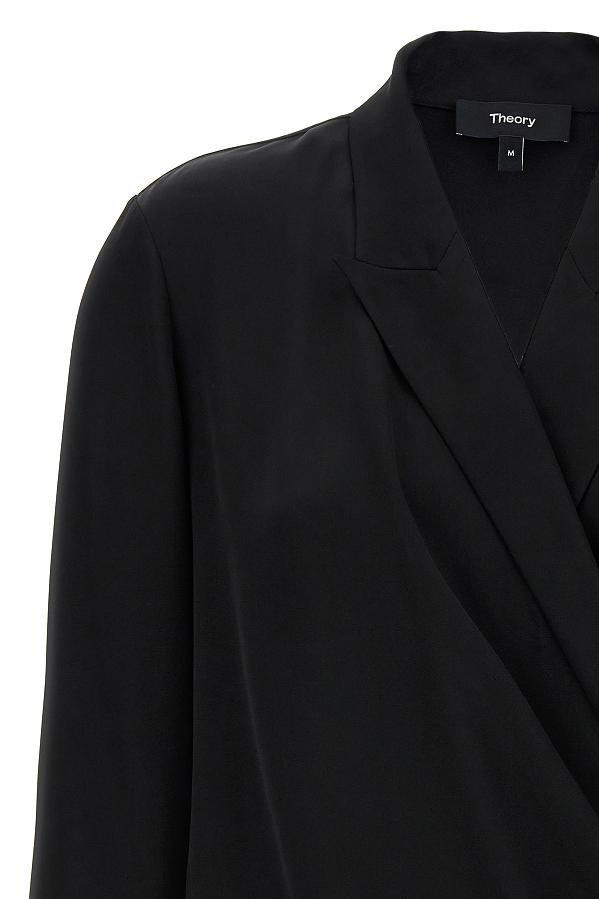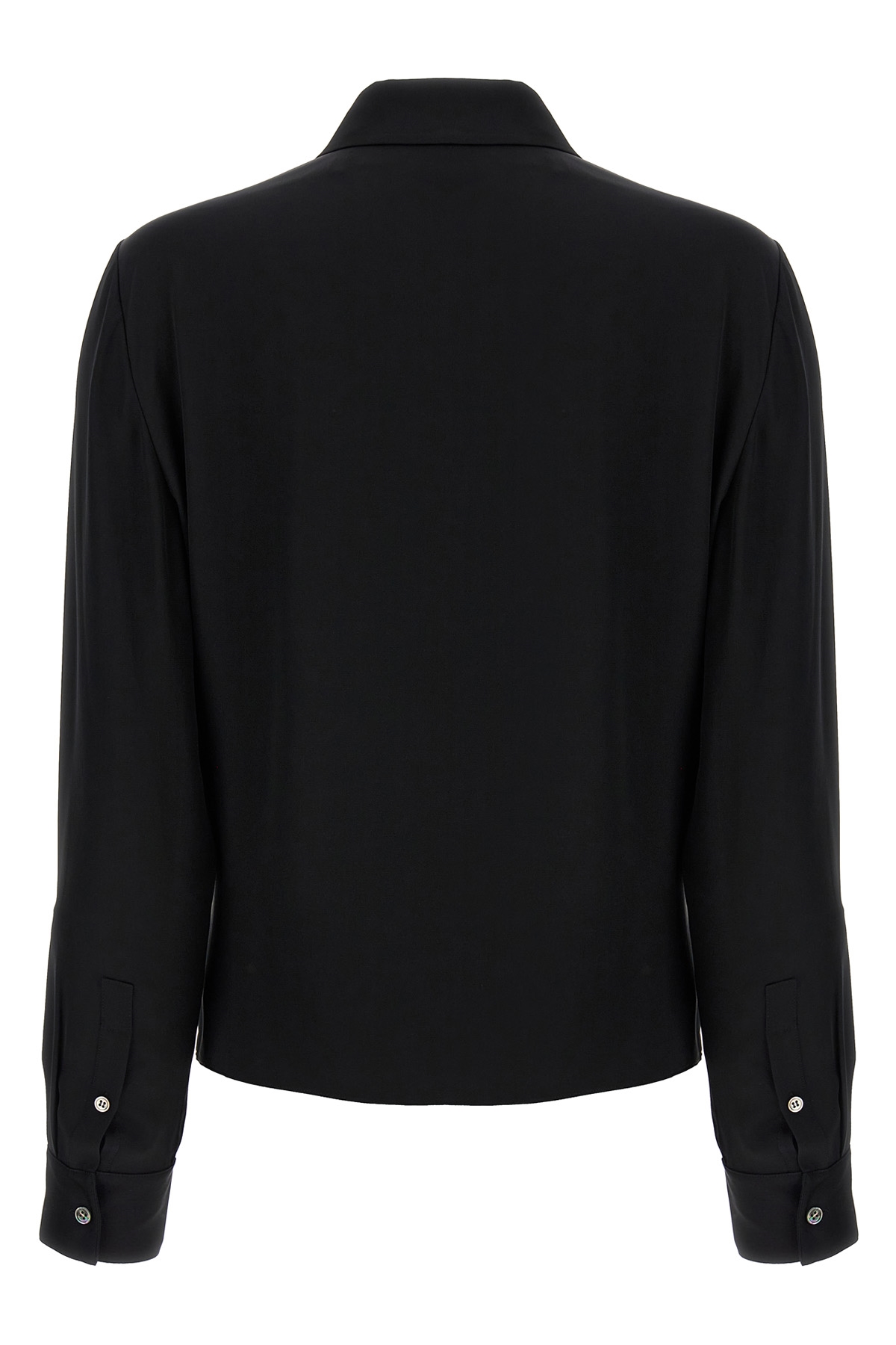 'PK Label Wrap' silk blouse with plunge V-neck with front crossing, collar with peak lapels, long cuffed sleeves.