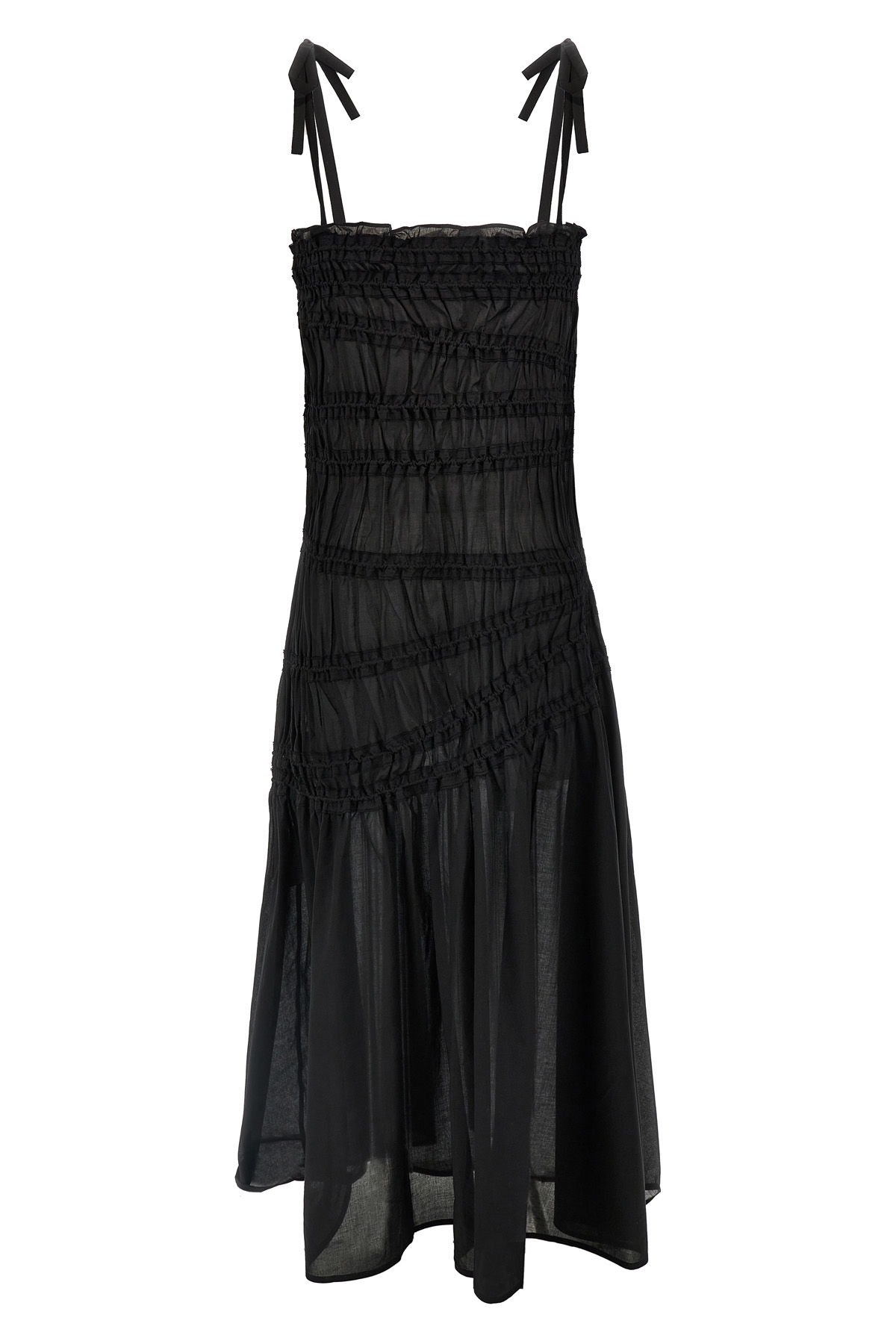 'Shoulder Tie' dress in ruffled cotton with adjustable shoulder straps.