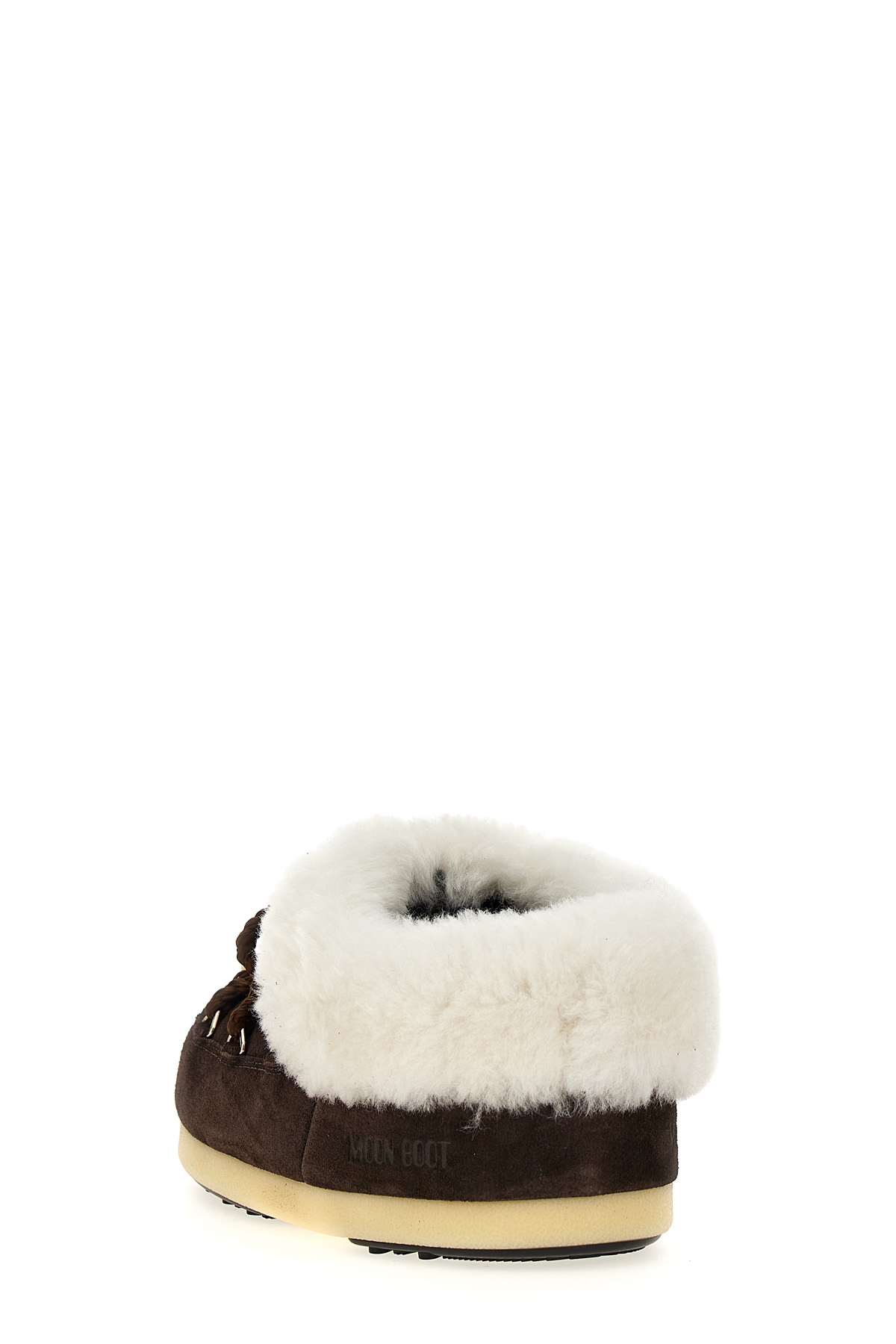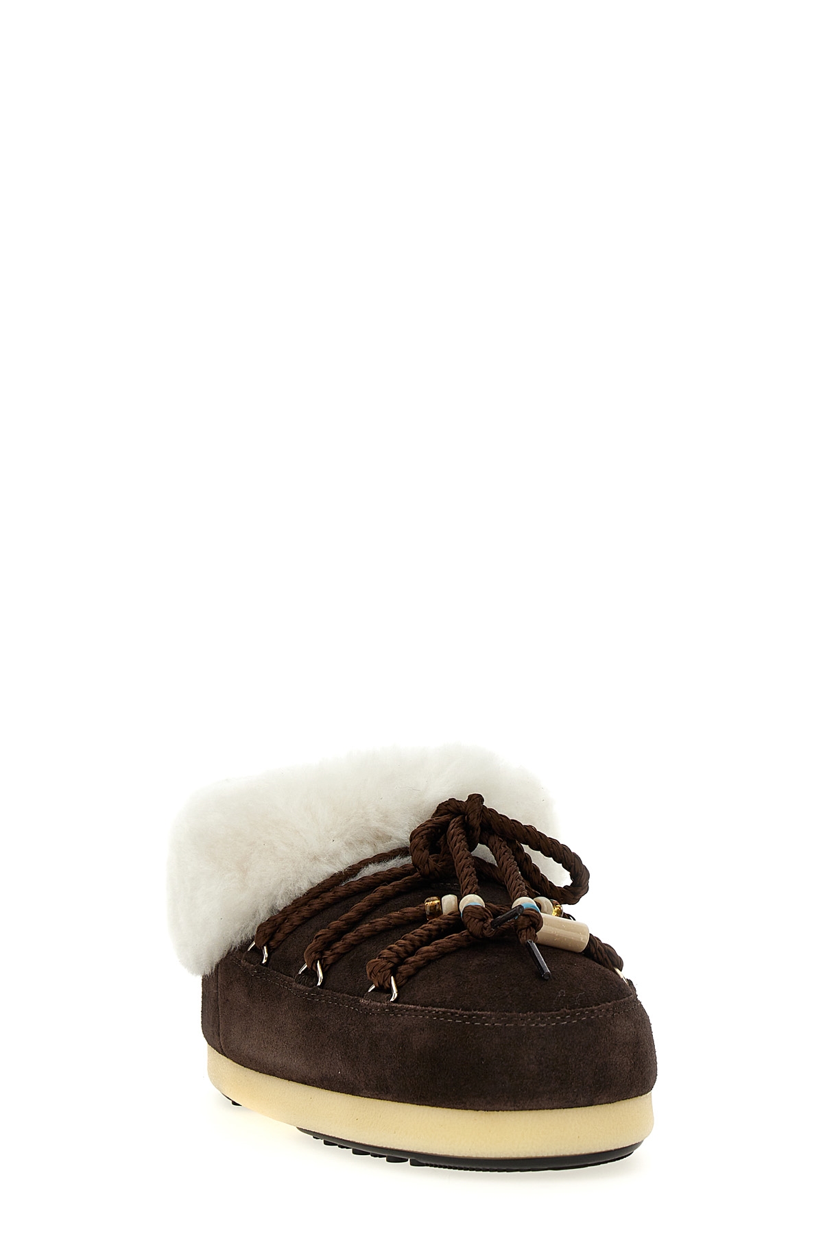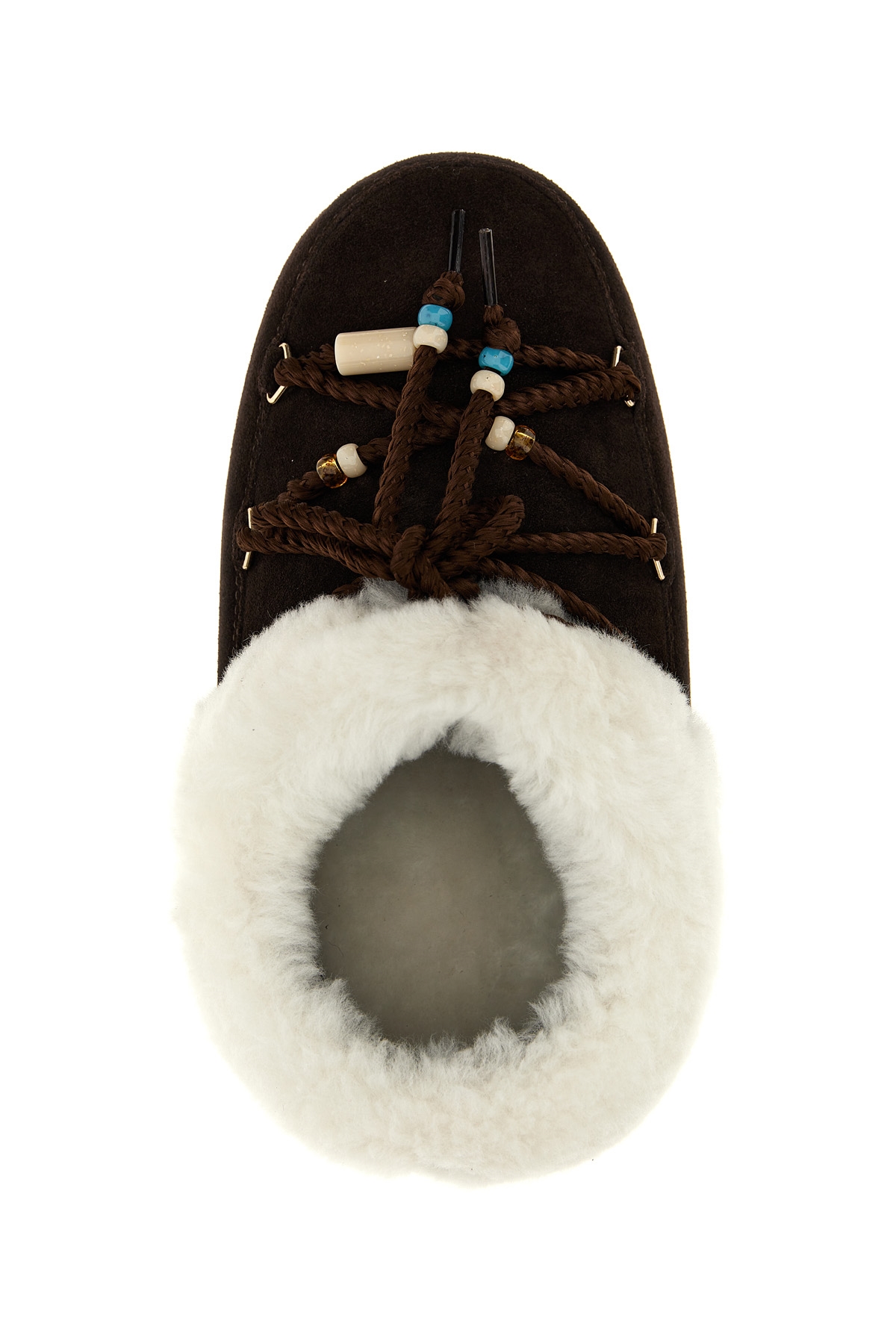 'Mule suede beads' suede ankle boots with fur insert, ambidextrous model, overlapping tubular laces with beads, non-slip rubber tread.