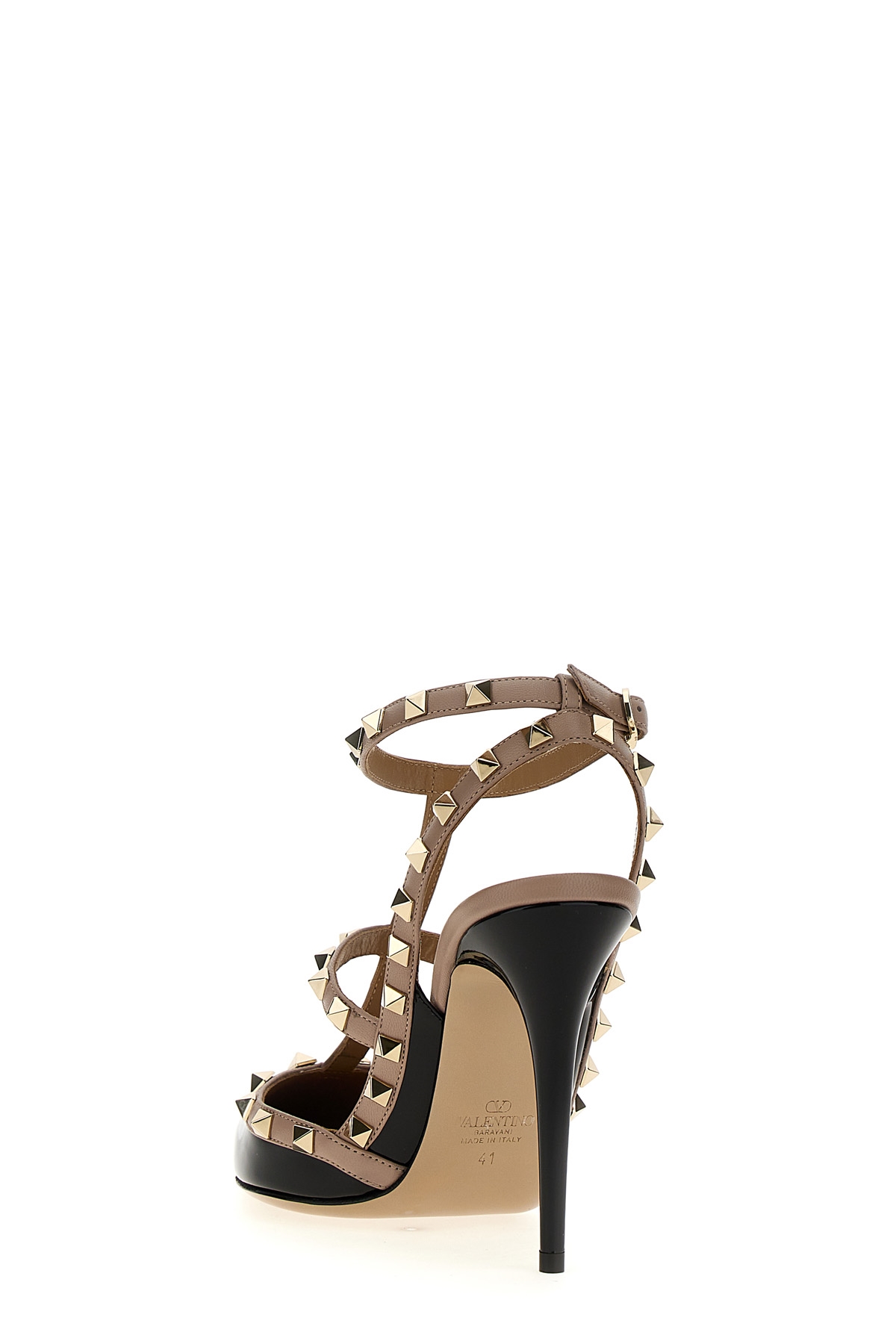 'Rockstud' patent leather pumps with stud appliques, adjustable ankle straps, pointed toe style with heel.