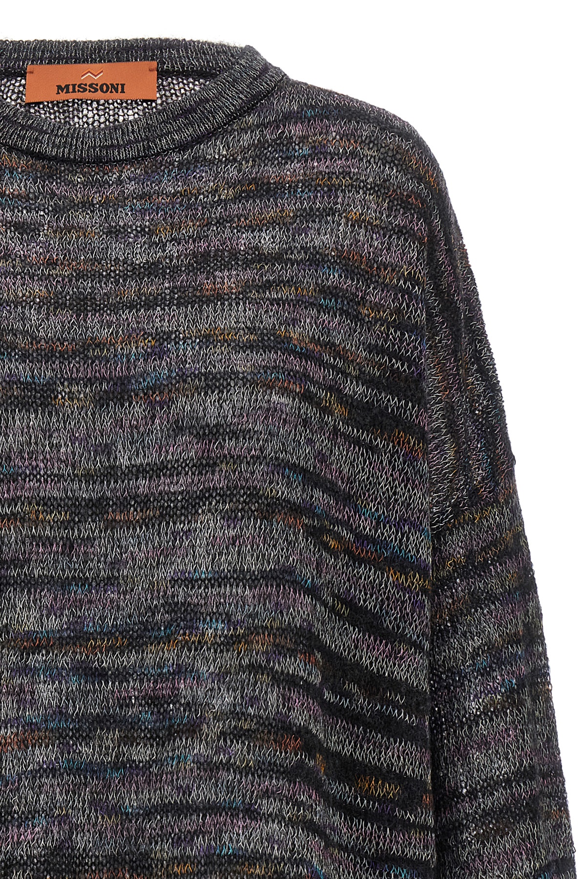 Tie-dye viscose, alpaca and wool sweater, crew neck, long cuffed sleeves.