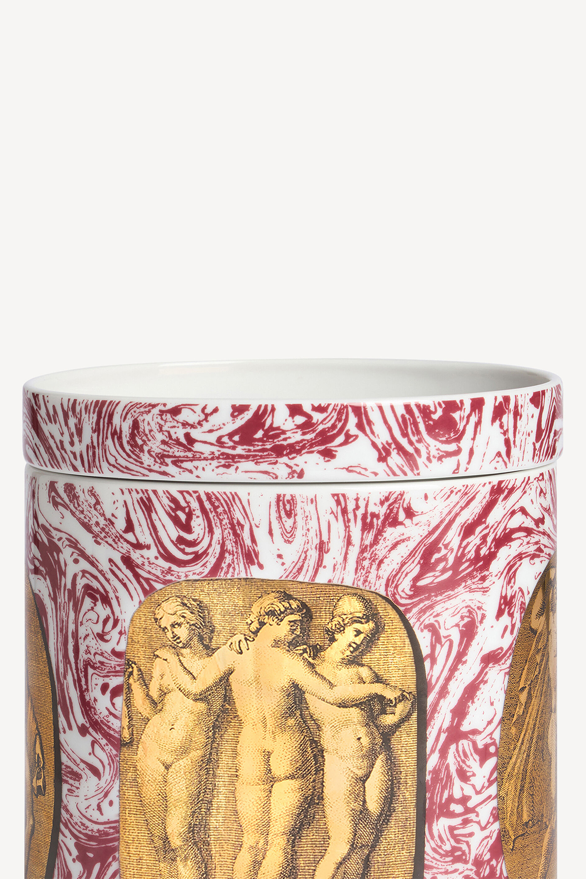The antique vases, cameos and bas-reliefs that decorate the surface of this hand-painted porcelain candle are a tribute to the Classicism loved by Fornasetti.