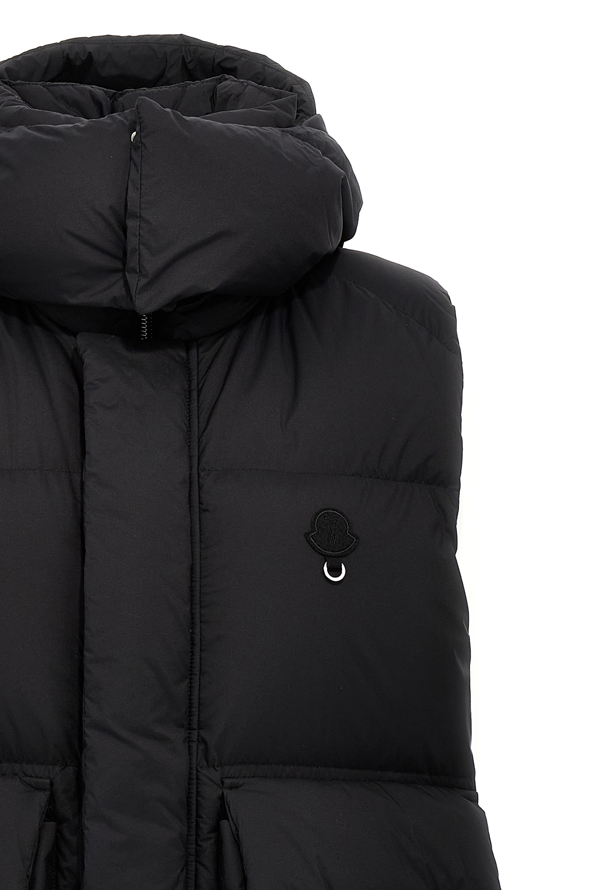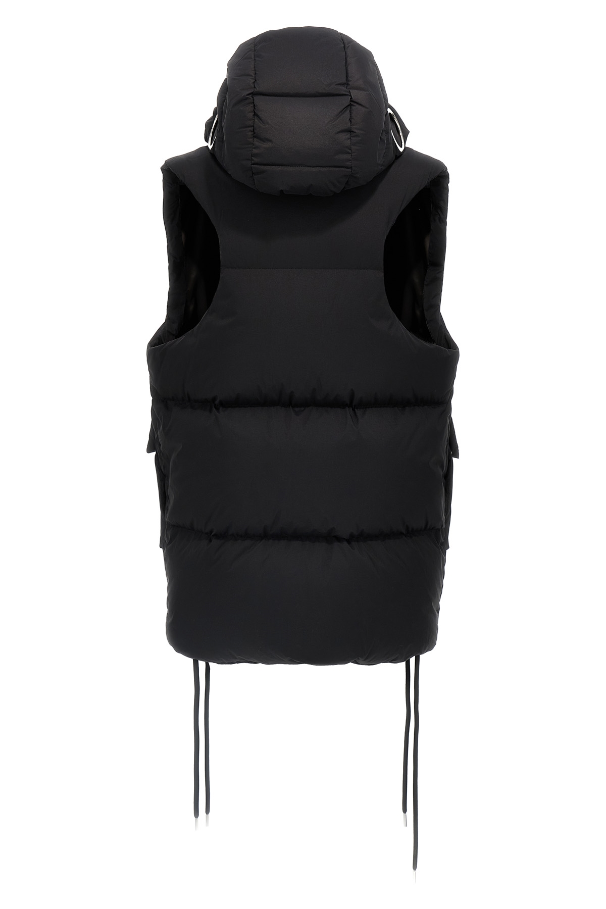 Moncler x Willow Smith 'Sabela' vest in technical fabric with down padding, removable and adjustable hood with maxi metal eyelets, logo patch with metal ring inspired by the artist's Septum piercing, high neck, pockets, zip and snap button closure, drawstring on the hem.