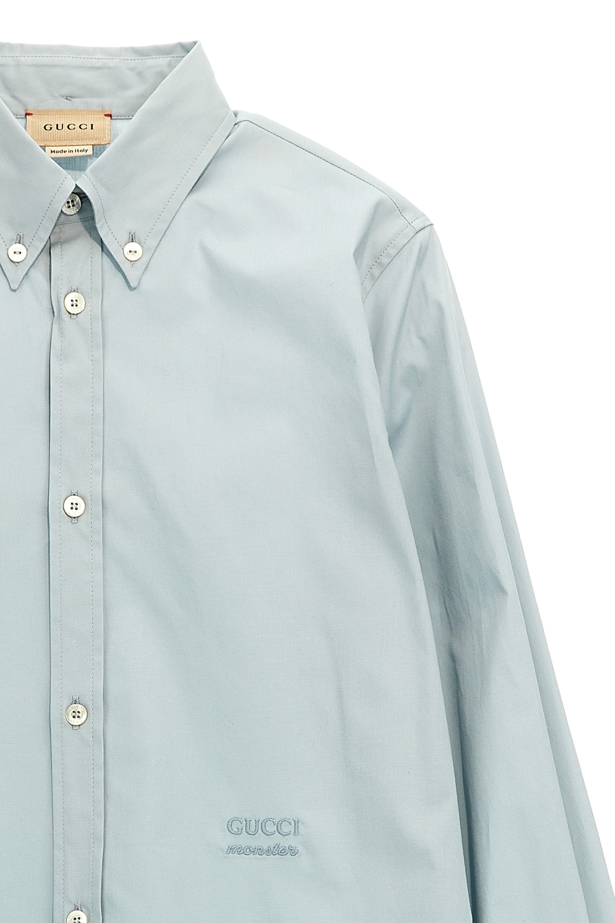KIDS Gucci x ⓒ OshKosh B'gosh, Inc. 'Gucci Monster' cotton shirt with front logo embroidery, button closure, long cuffed sleeves.