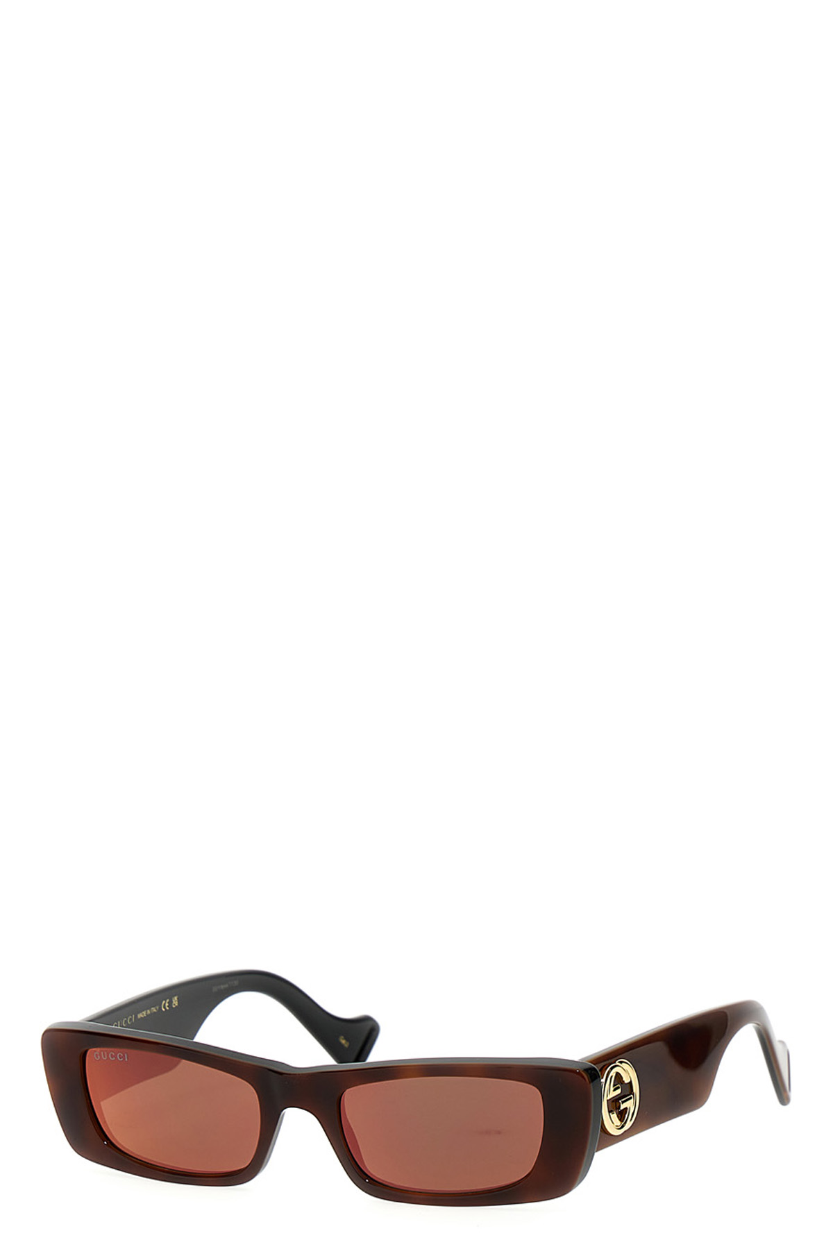 Sunglasses with rectangular glasses, acetate mount with GG logo.