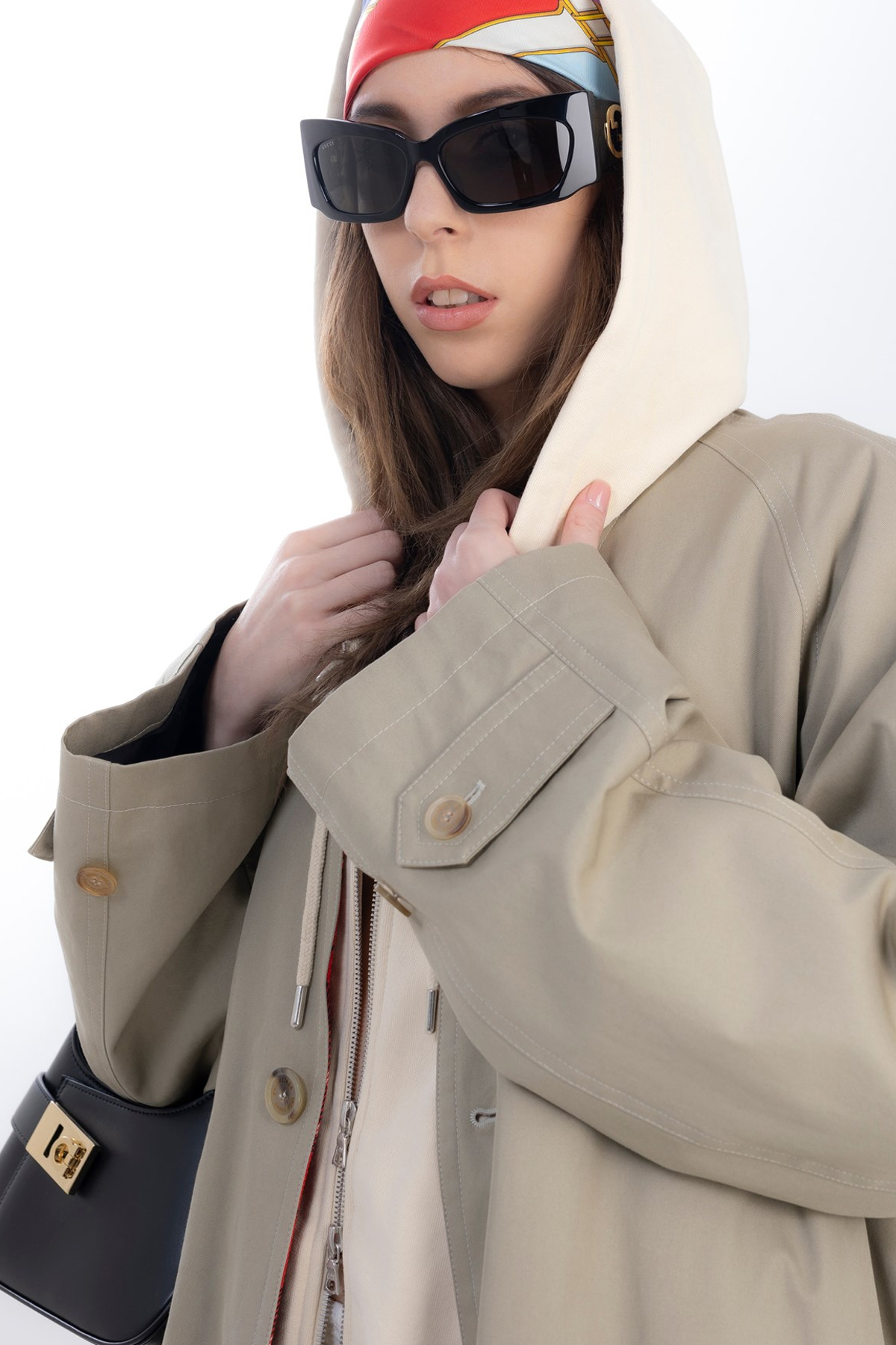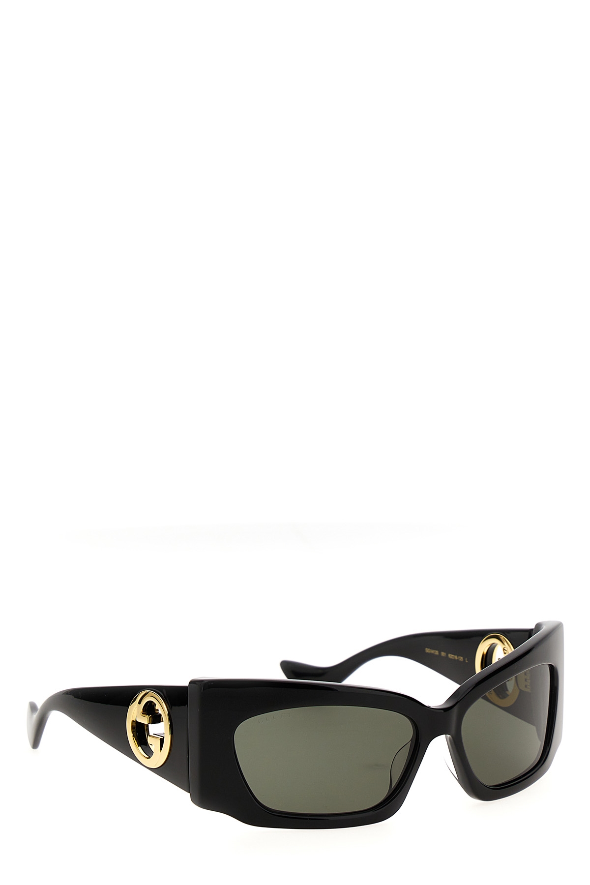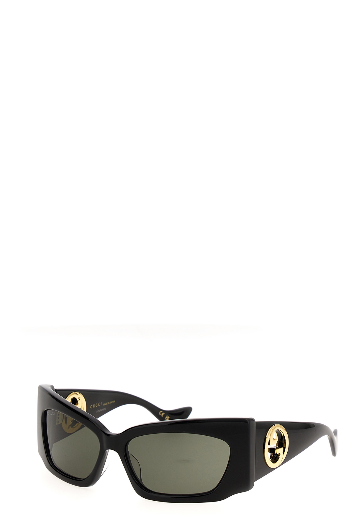 Geometric sunglasses with shiny acetate mount, shiny acetate rods with crossed round gold color crossed GG cut-out detail. Total PROTECTION OF UVB/UVB.