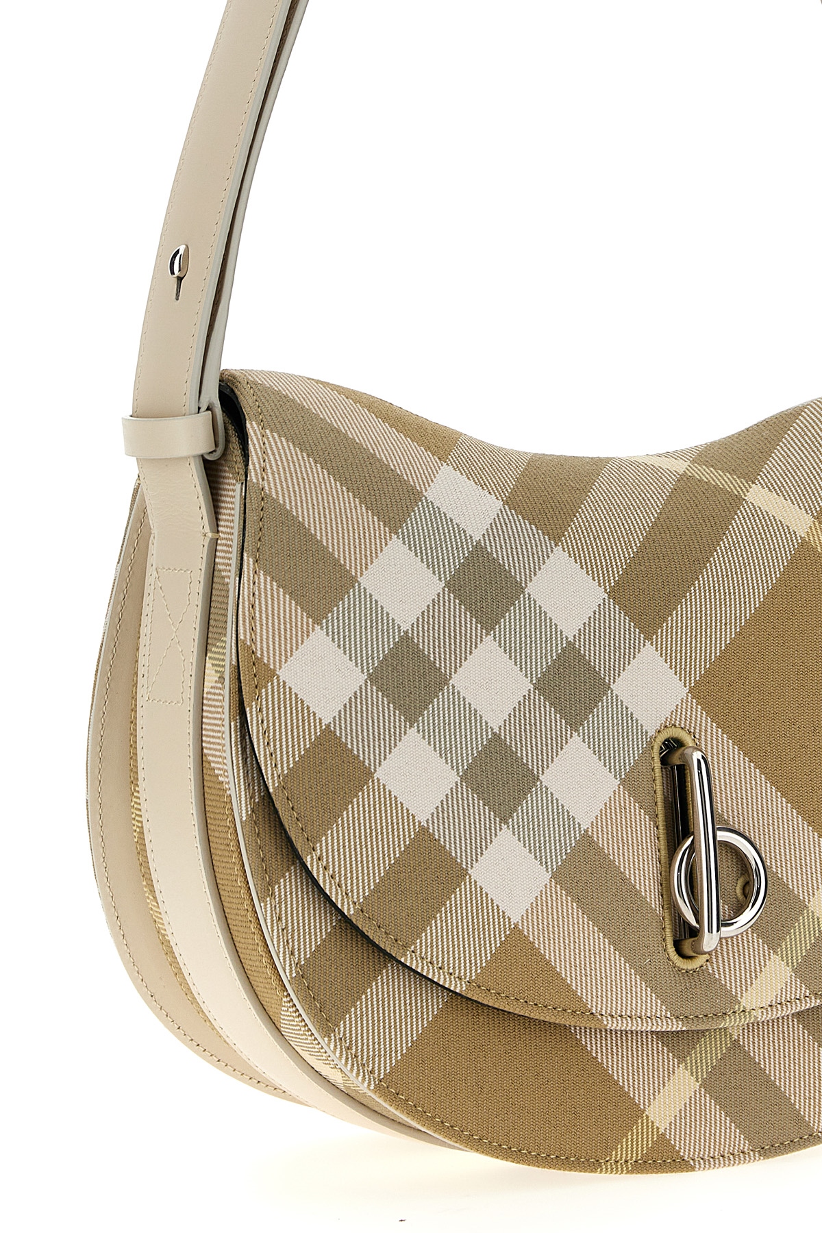 'Rocking Horse' medium shoulder bag in woven wool blend with check print, metal flap closure, adjustable leather shoulder strap.