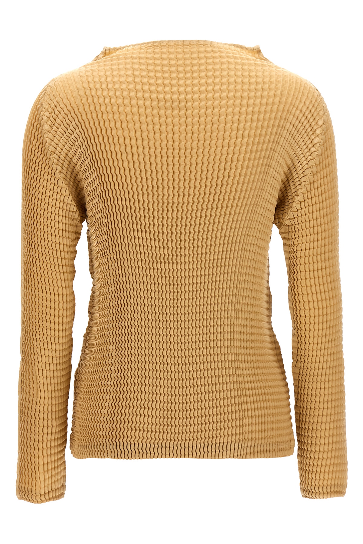 'Suede Like Pleats' pleated blouse with crew neck and long sleeves. SUSTAINABLE: product made from recycled polyester.