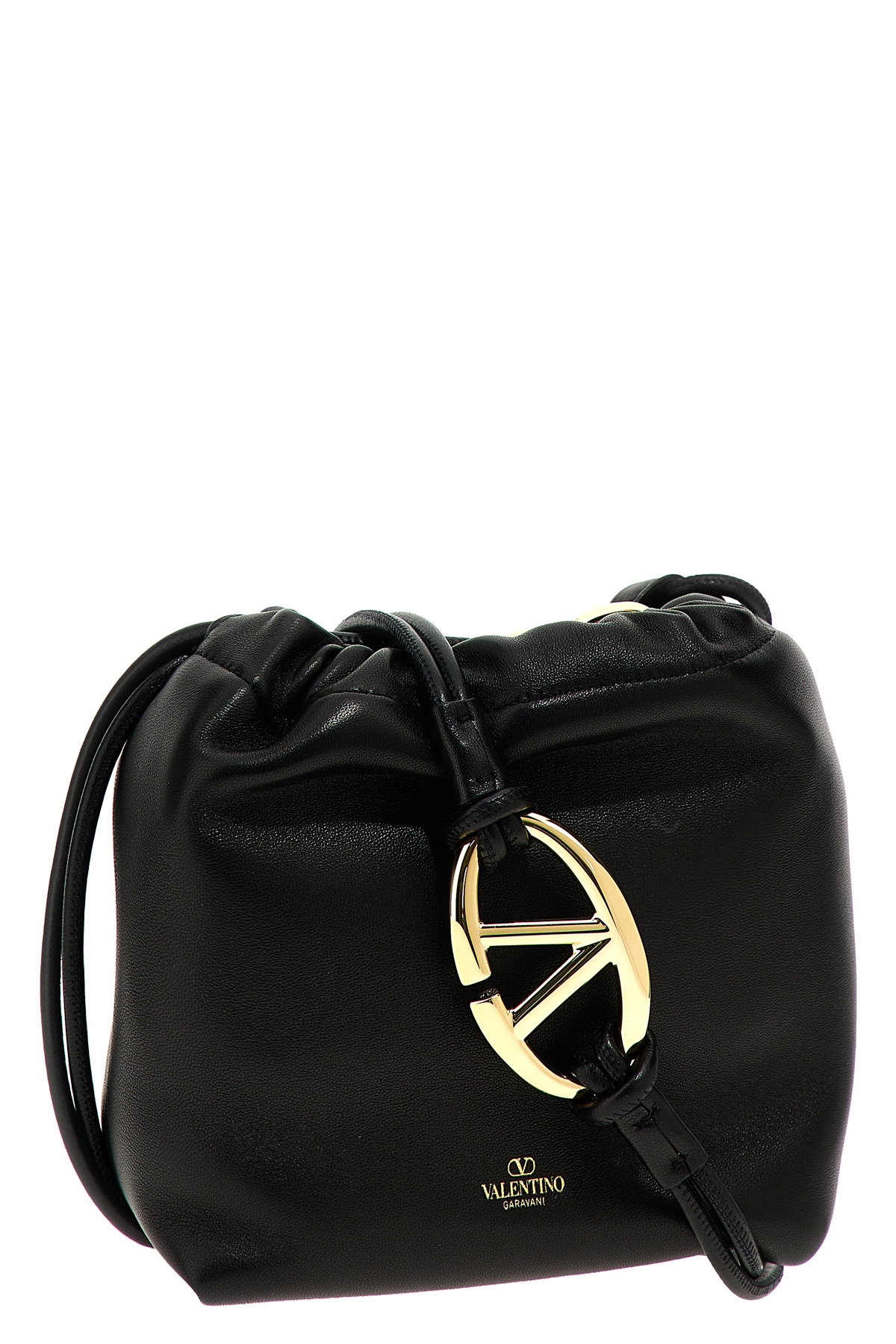 'Vlogo Pouf' nappa crossbody bag with gold metal logo, drawstring closure, leather shoulder strap.