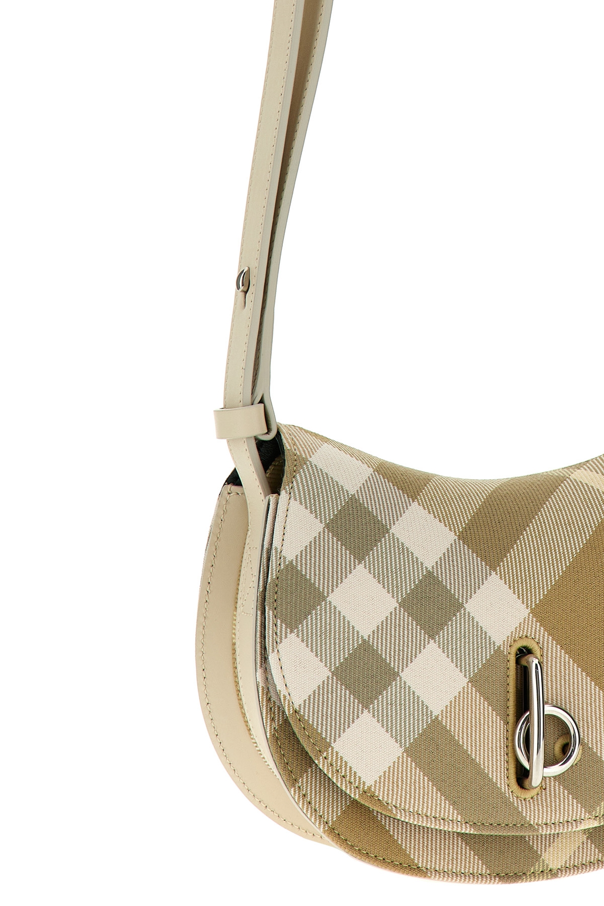 'Rocking Horse' mini shoulder bag in check print wool blend, leather details, flap closure with metal hook, adjustable shoulder strap.