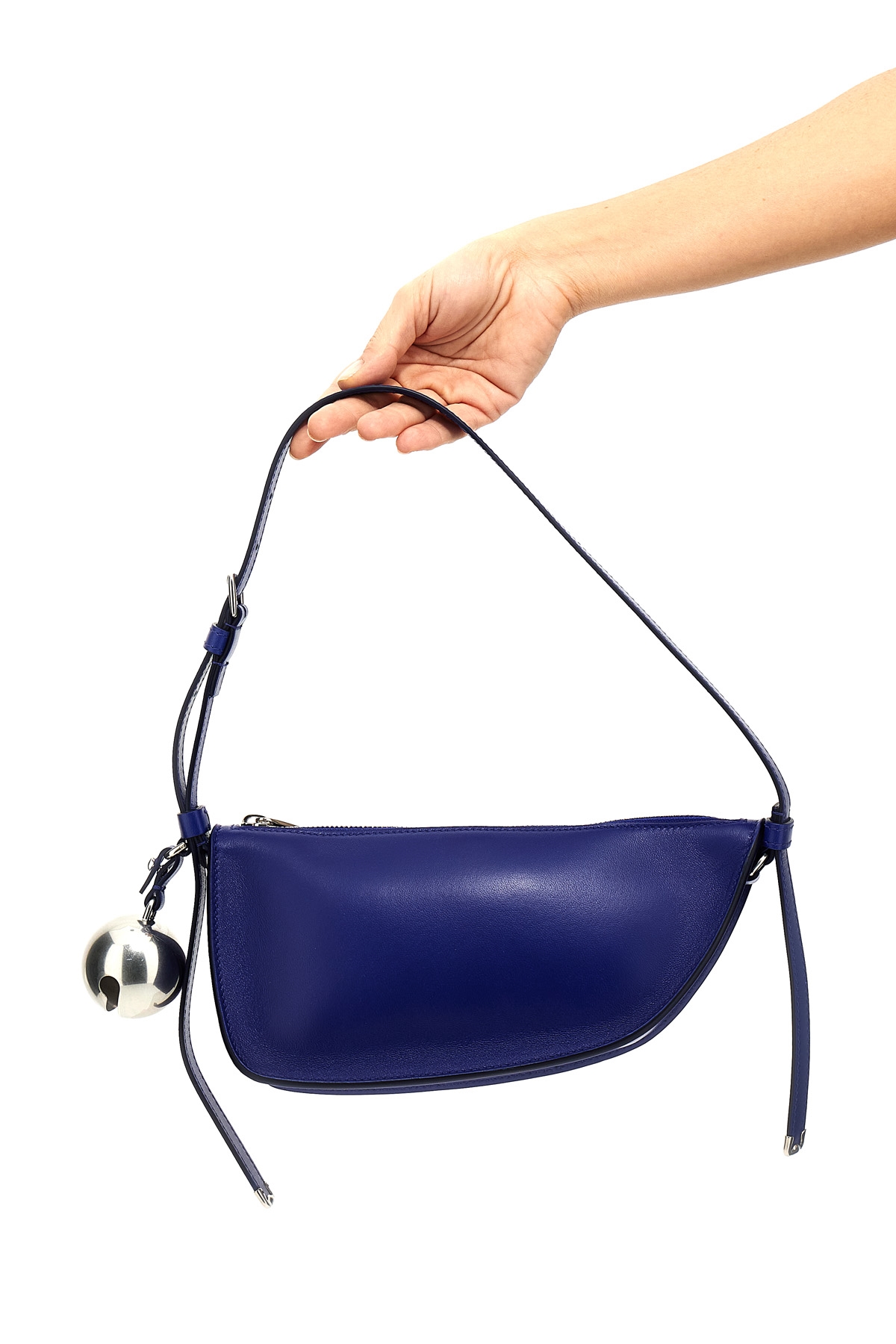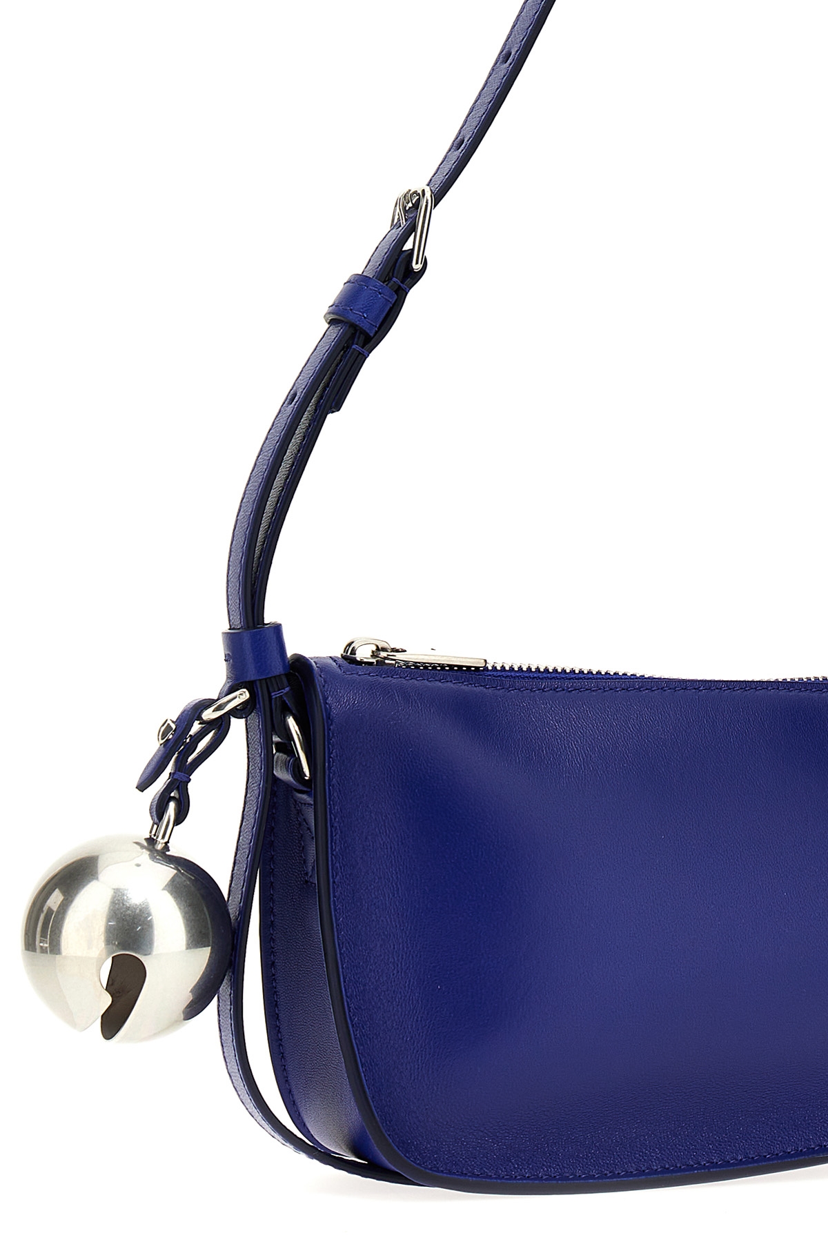 'Shield' nappa mini shoulder bag, removable doorbell charm, zip closure, adjustable shoulder strap, embossed logo.