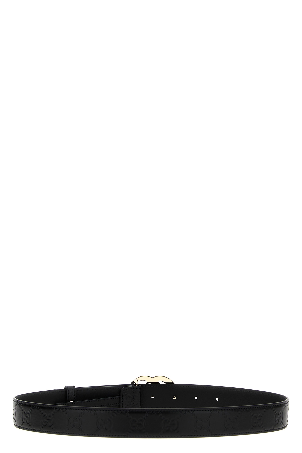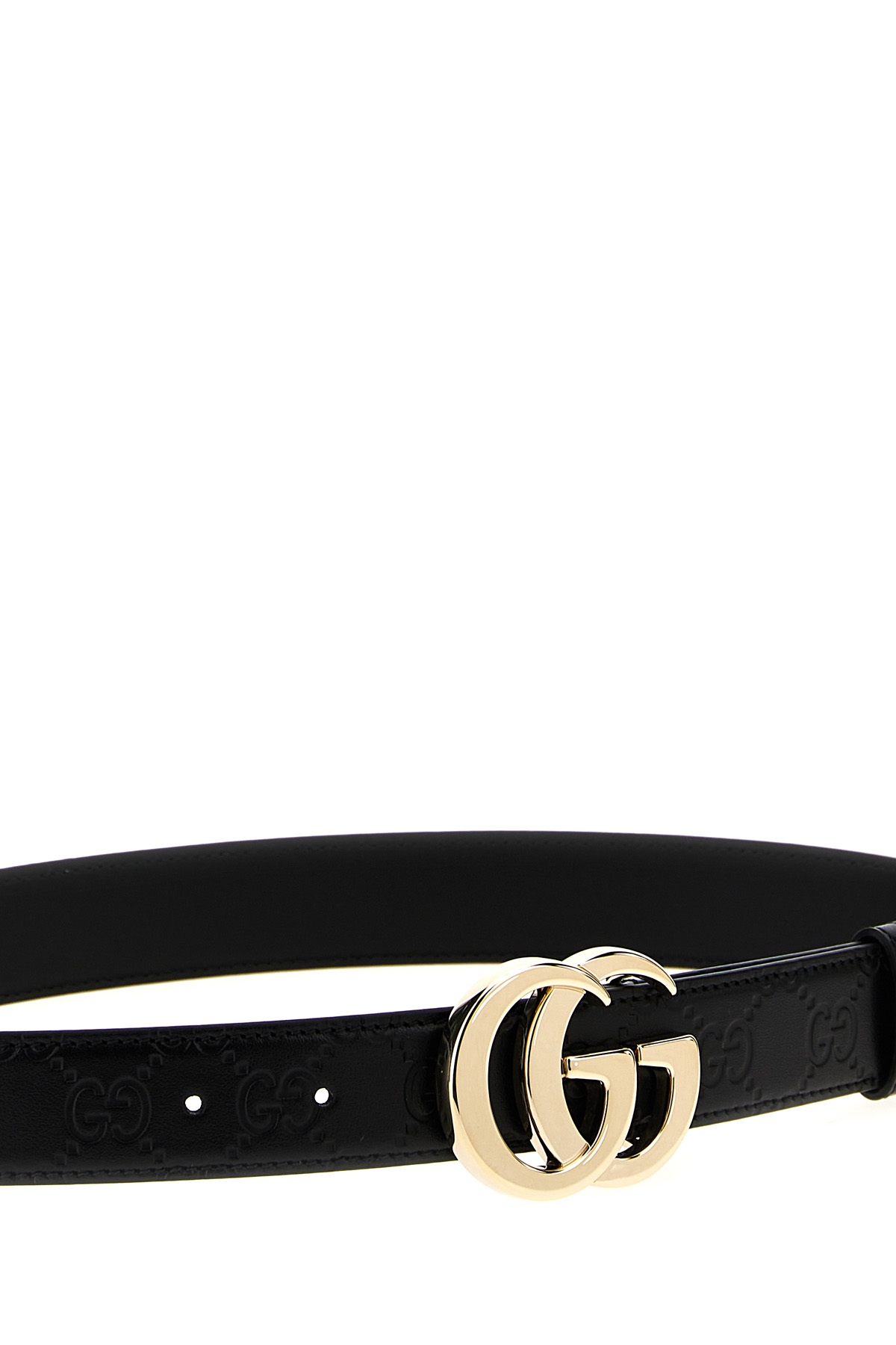 'GG Milano' leather belt with all-over embossed logo, metal logo buckle.
