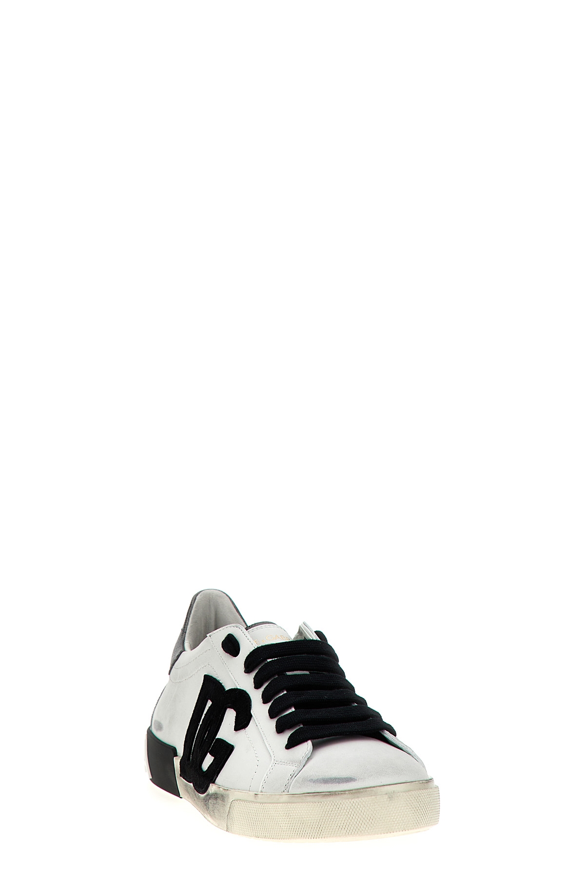 'Portofino Vintage' sneakers with aged calf leather upper, side suede logo patch, contrast heel, lace-up closure, leather fussbett with logo label, rubber bottom with logo spoiler, logo rubber sole.