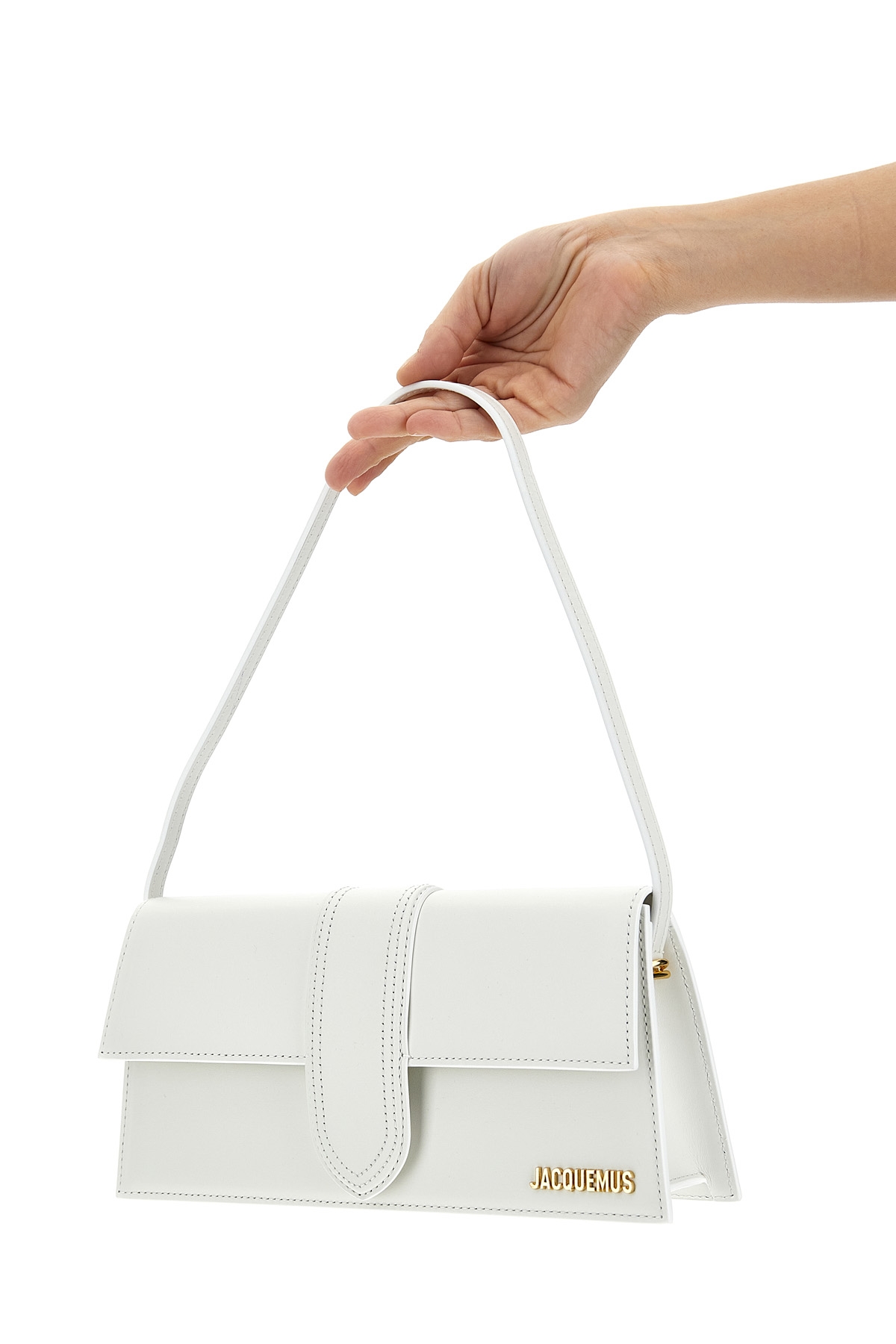 Le Bambino Long leather shoulder bag with magnetic flap closure, front metal logo applique.