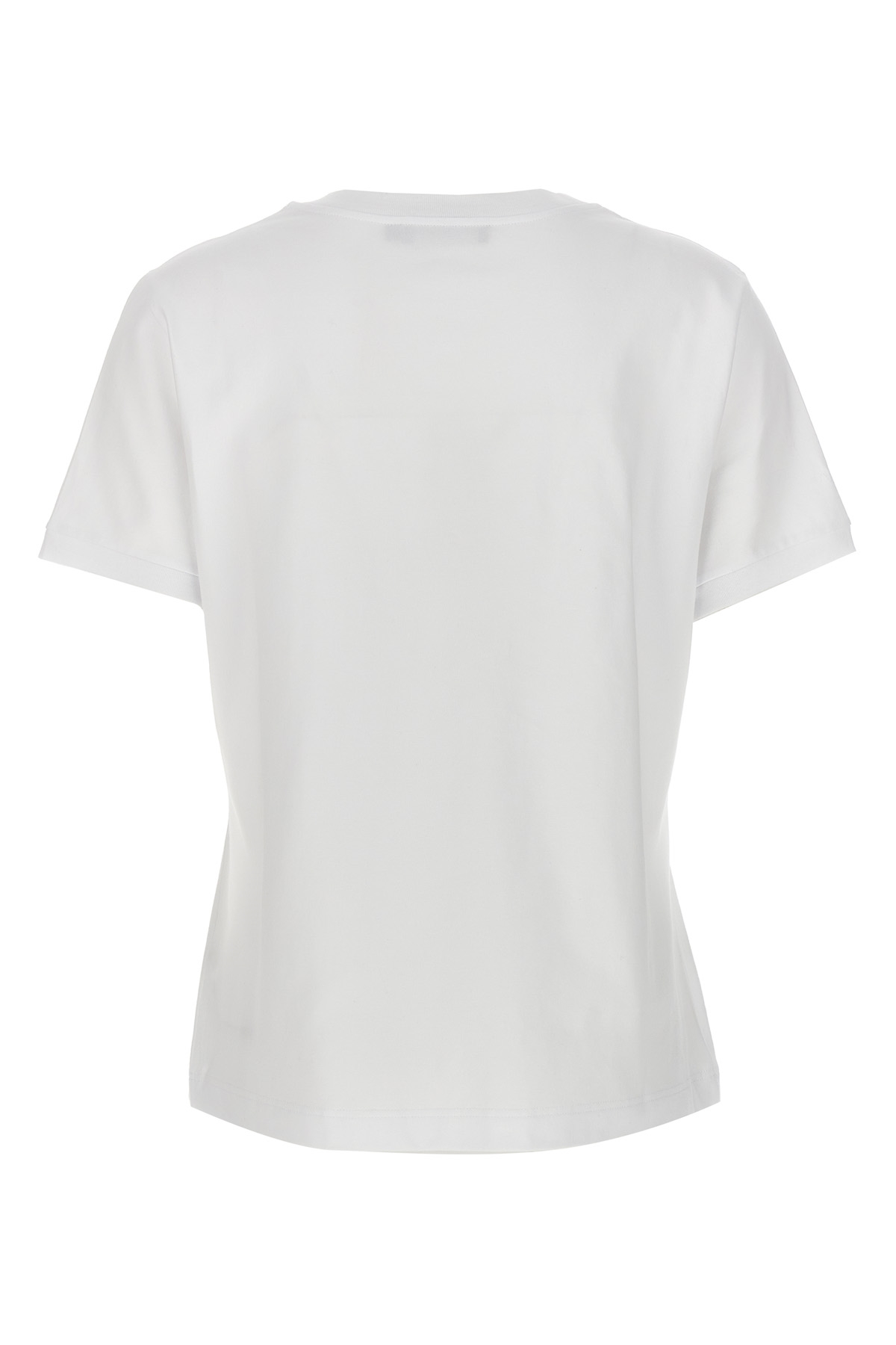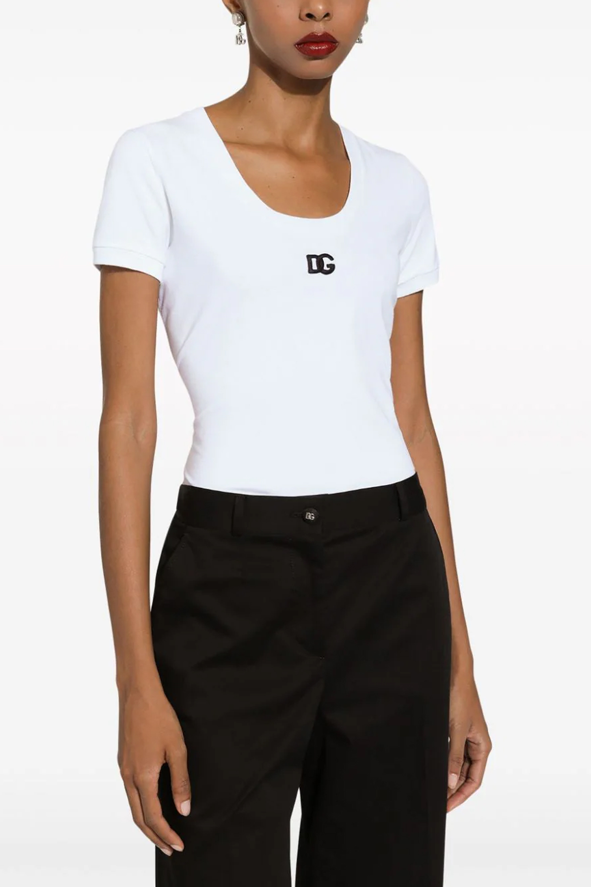 Stretch cotton T-shirt with front logo patch, wide round neckline.
