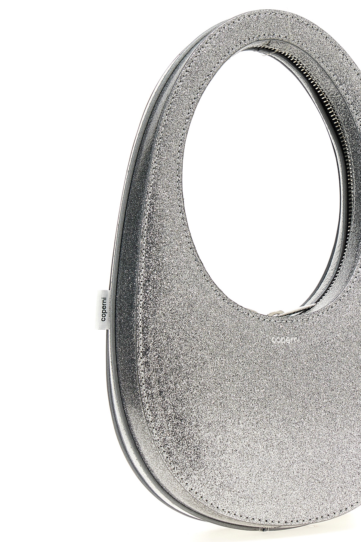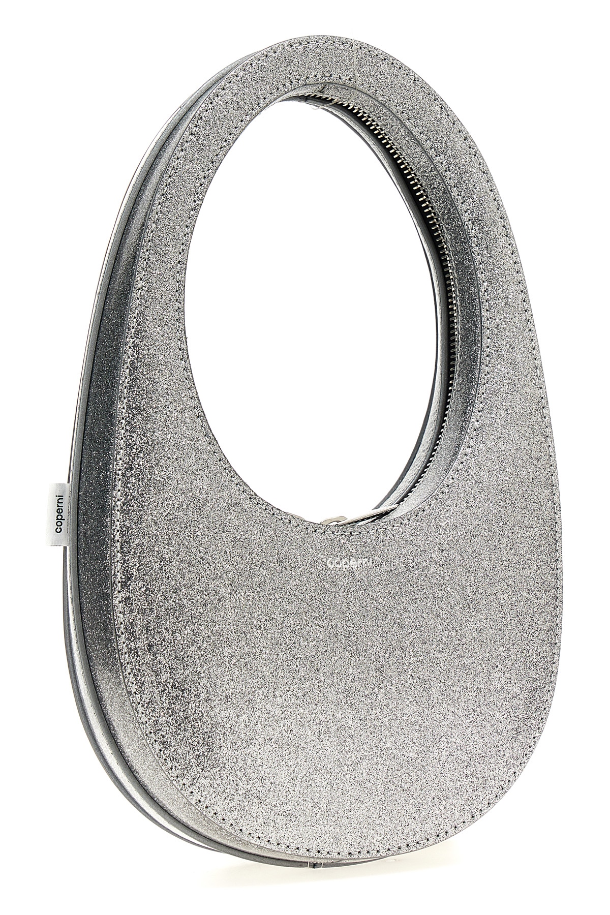 'Glitter Mini Swipe Bag' glitter leather handbag with zip closure,