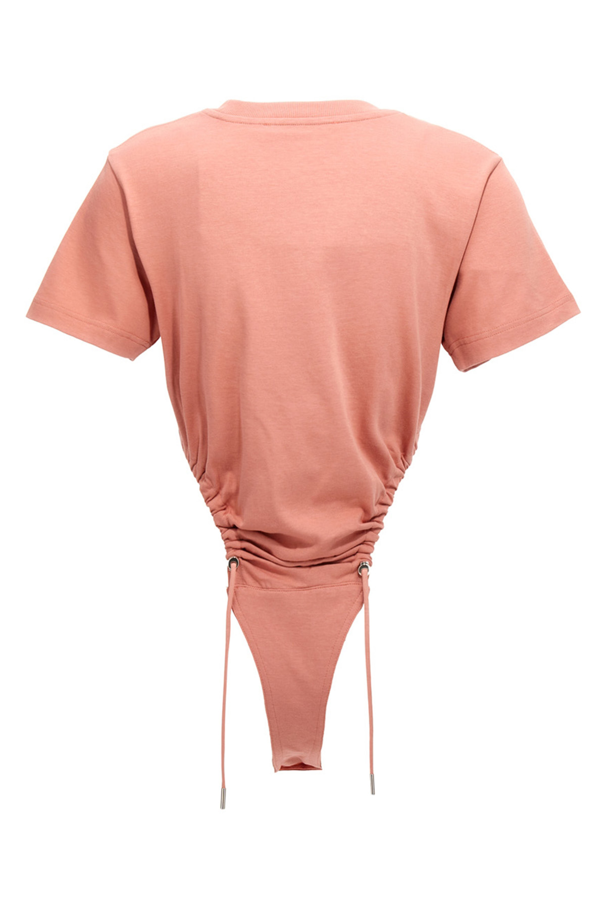 Body in cotone con lati ruched regolabili con coulisse, ricamo logo, girocollo, chiusura con bottoncini, manica corta. JULIAN SUSTAINABLE: Prodotto realizzato con cotone organico.