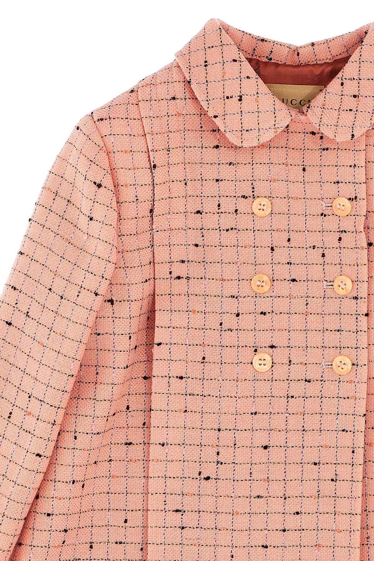 JULIAN KIDS Check damier wool blend coat with double breast, button closure and long sleeves.