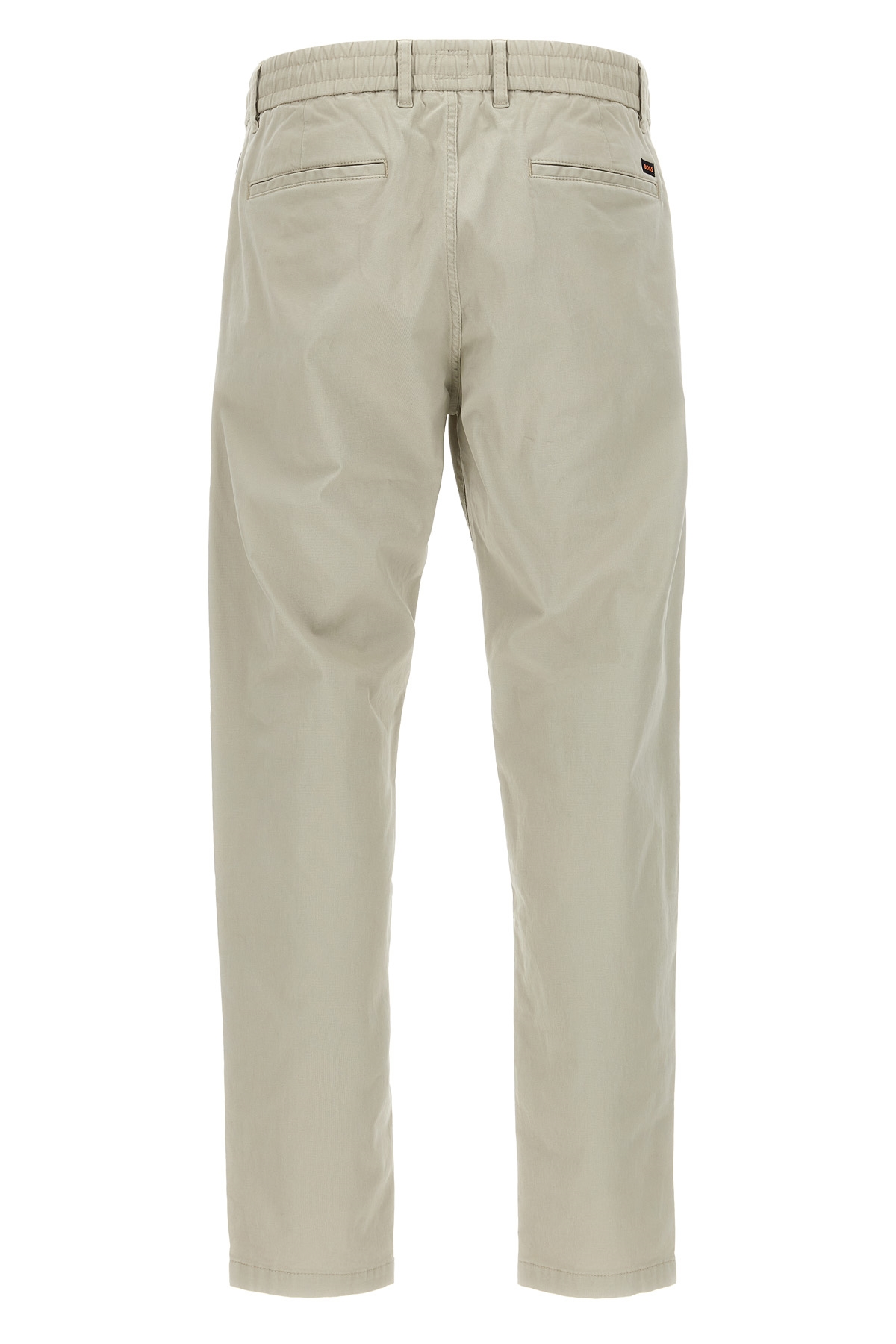 Cotton pants, elastic with adjustable drawstring at the waist, zip and button closure, pockets, straight leg.