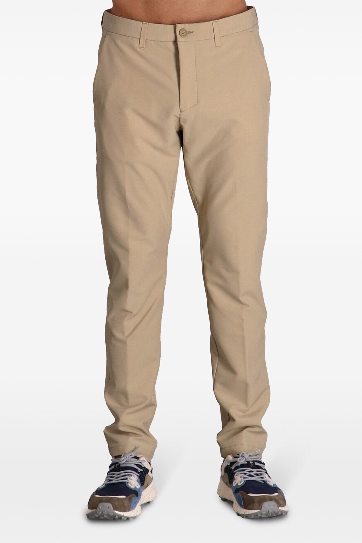 'Commuter' trousers in water-repellent technical fabric, adjustable drawstring at the waist, zip and button closure, pockets, straight leg.