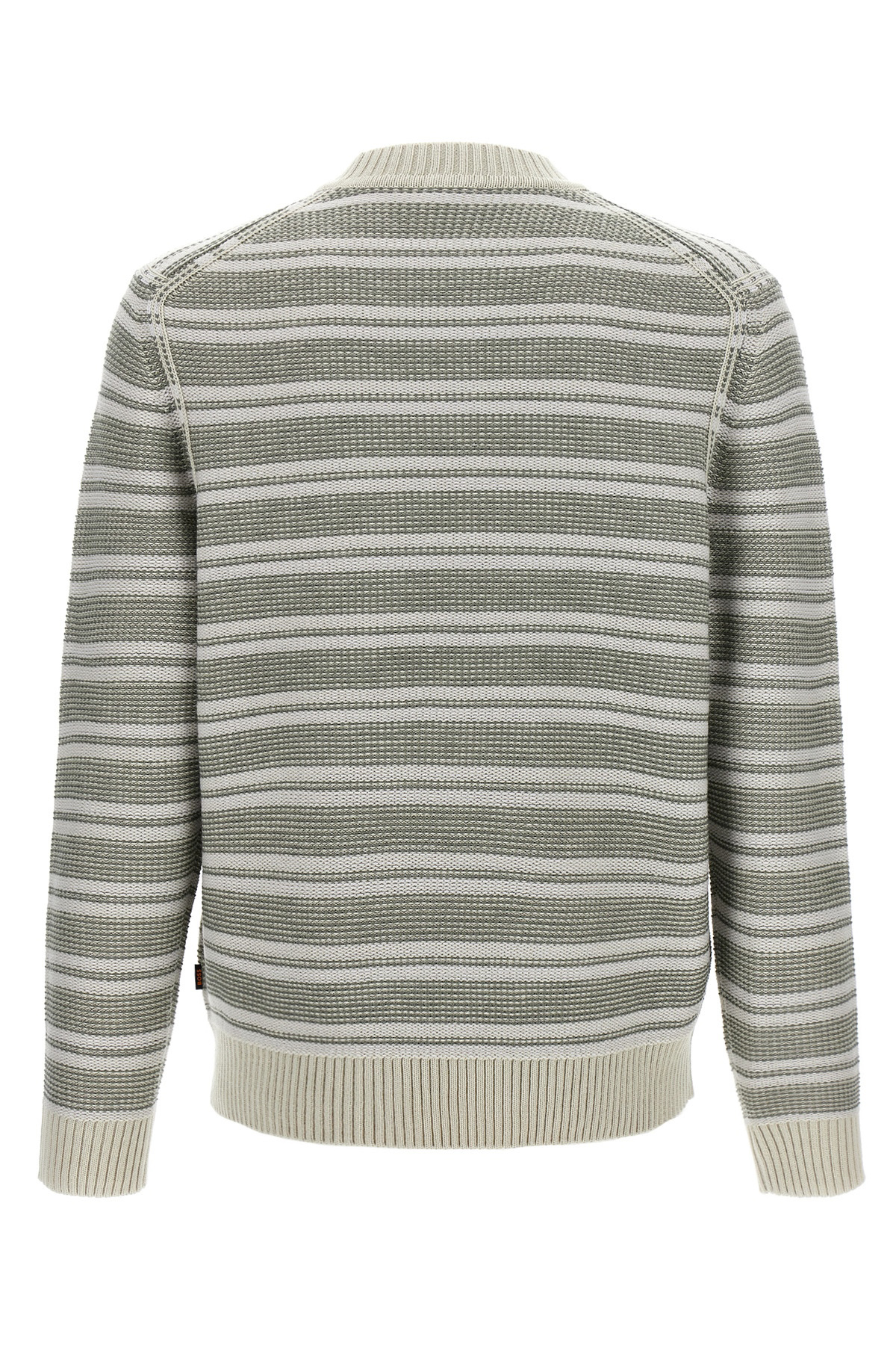 'Amodero' sweater in two-tone wool blend, crew neck, long cuffed sleeves.