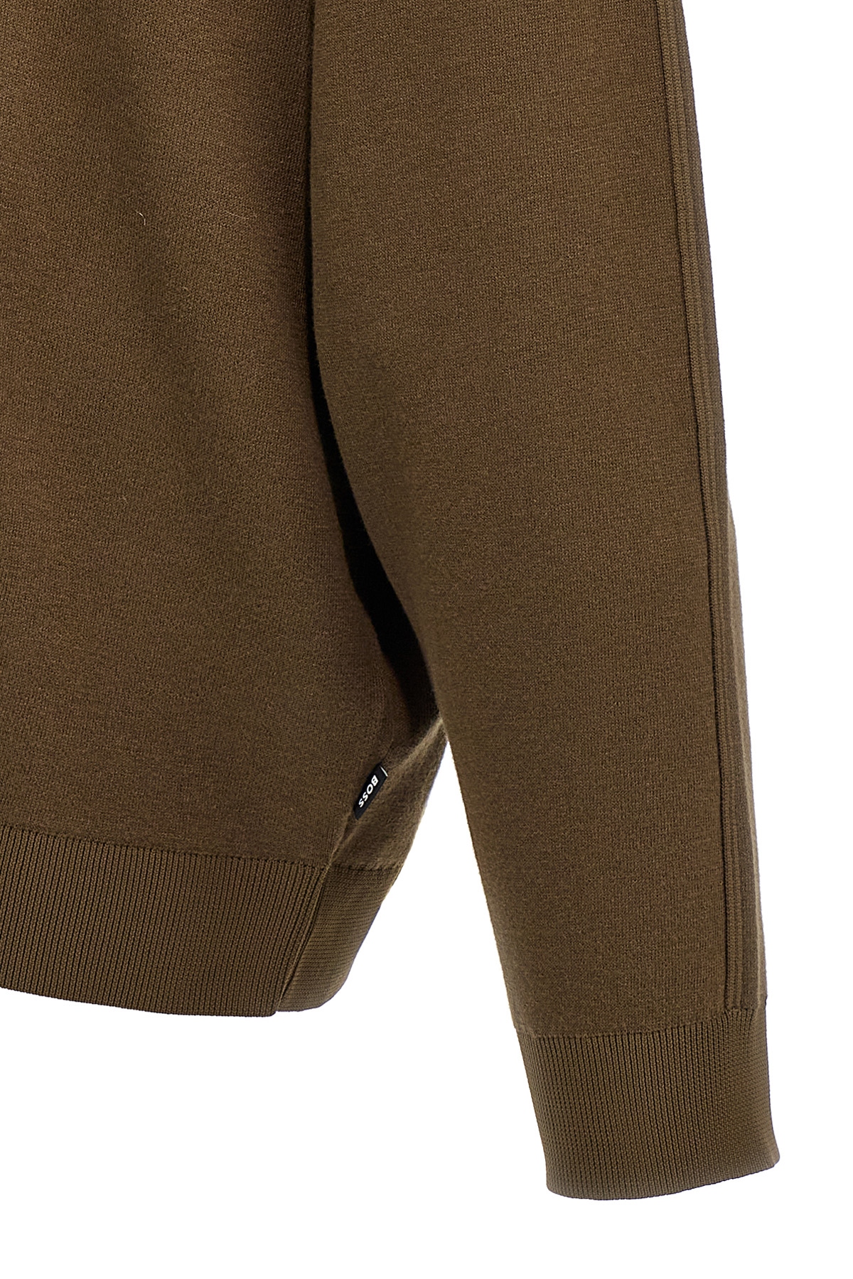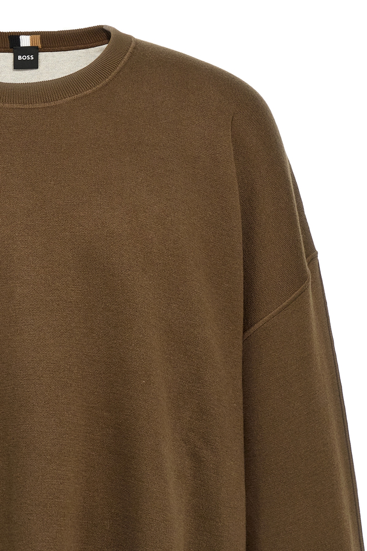 'H-Daero' wool blend sweater, crew neck, stitching detail, long mania with cuffs.