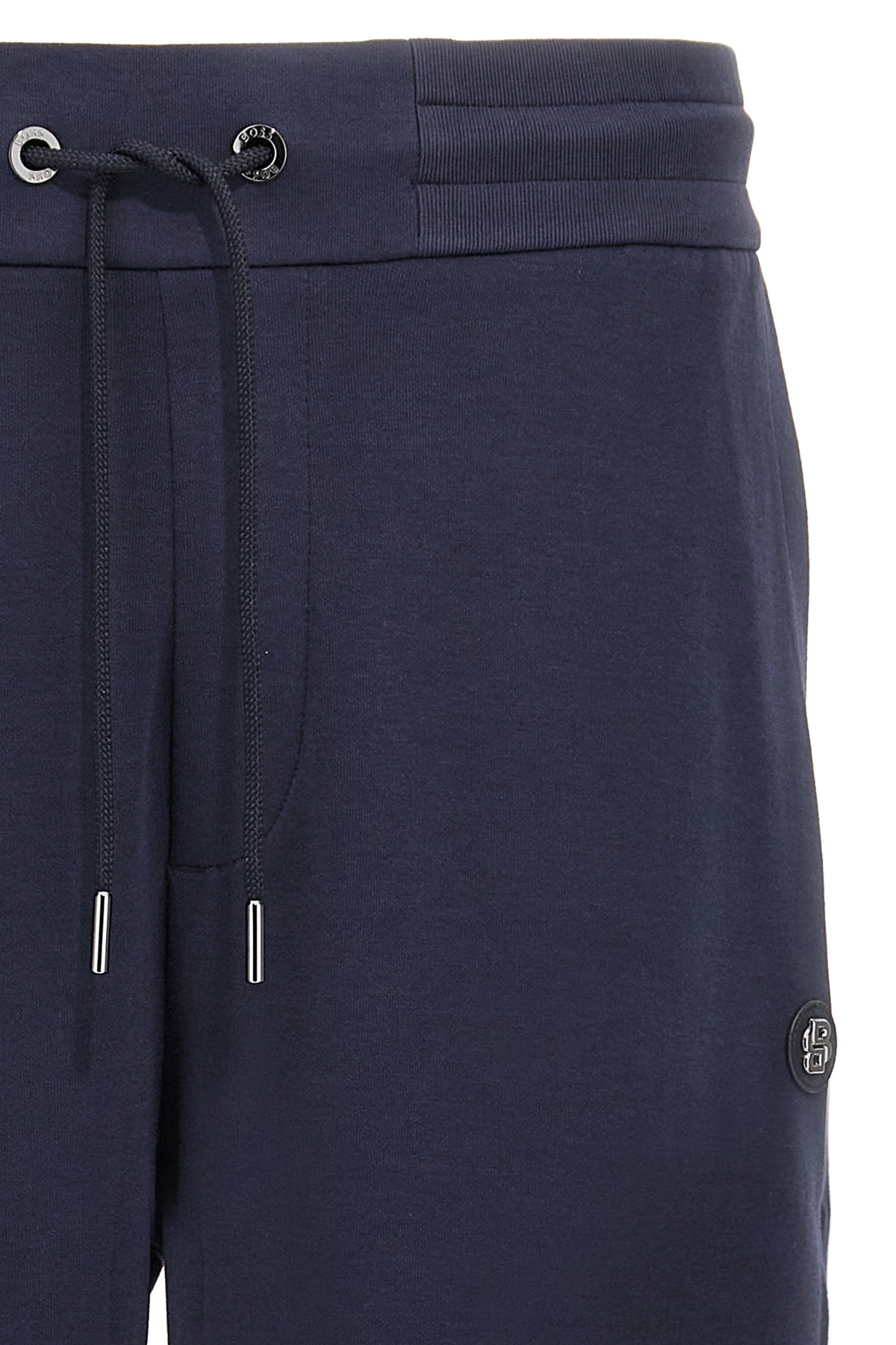 'Locsin 01' cotton blend joggers with leather and metal logo patch on the front, adjustable drawstring elastic at the waist, pockets, straight leg with cuffs. SUSTAINABLE: This product is made with cotton from regenerative agriculture.