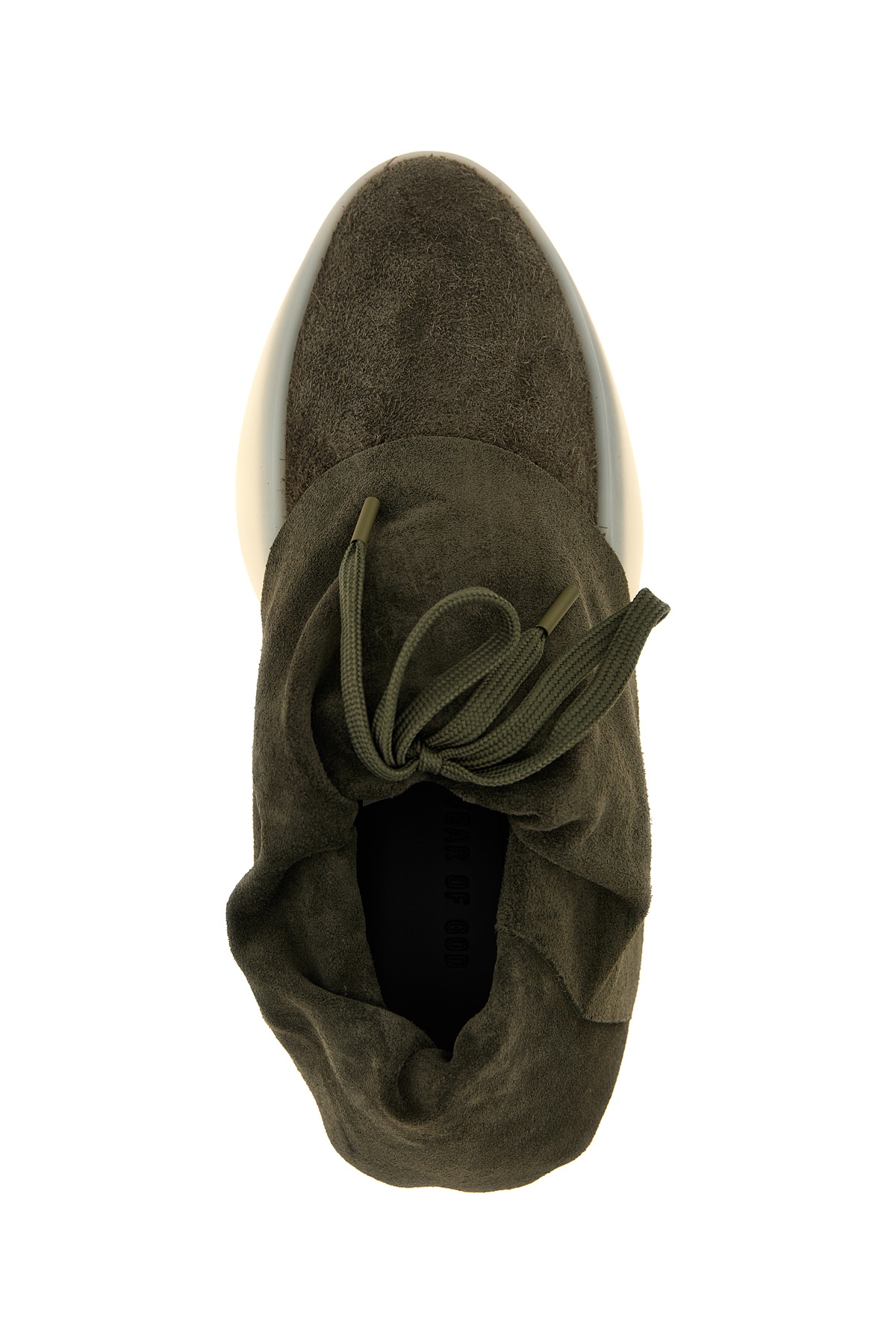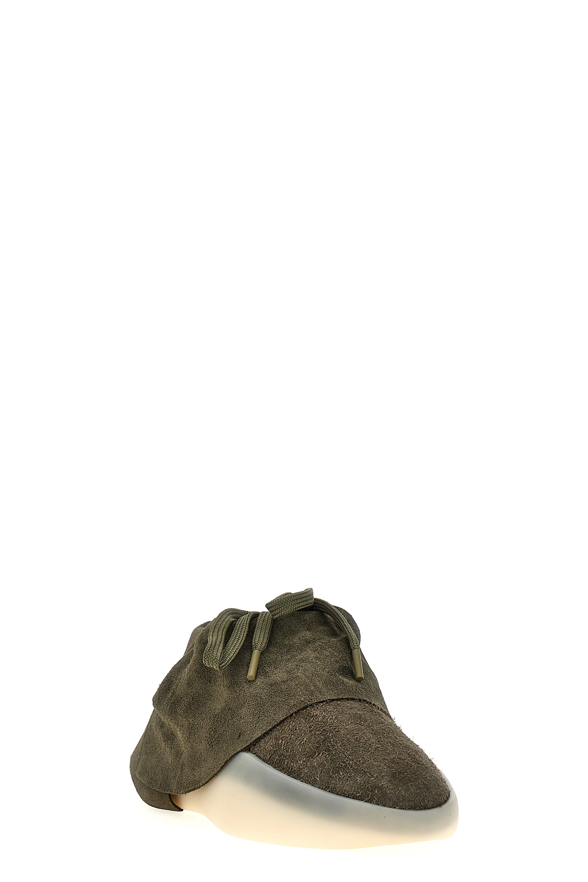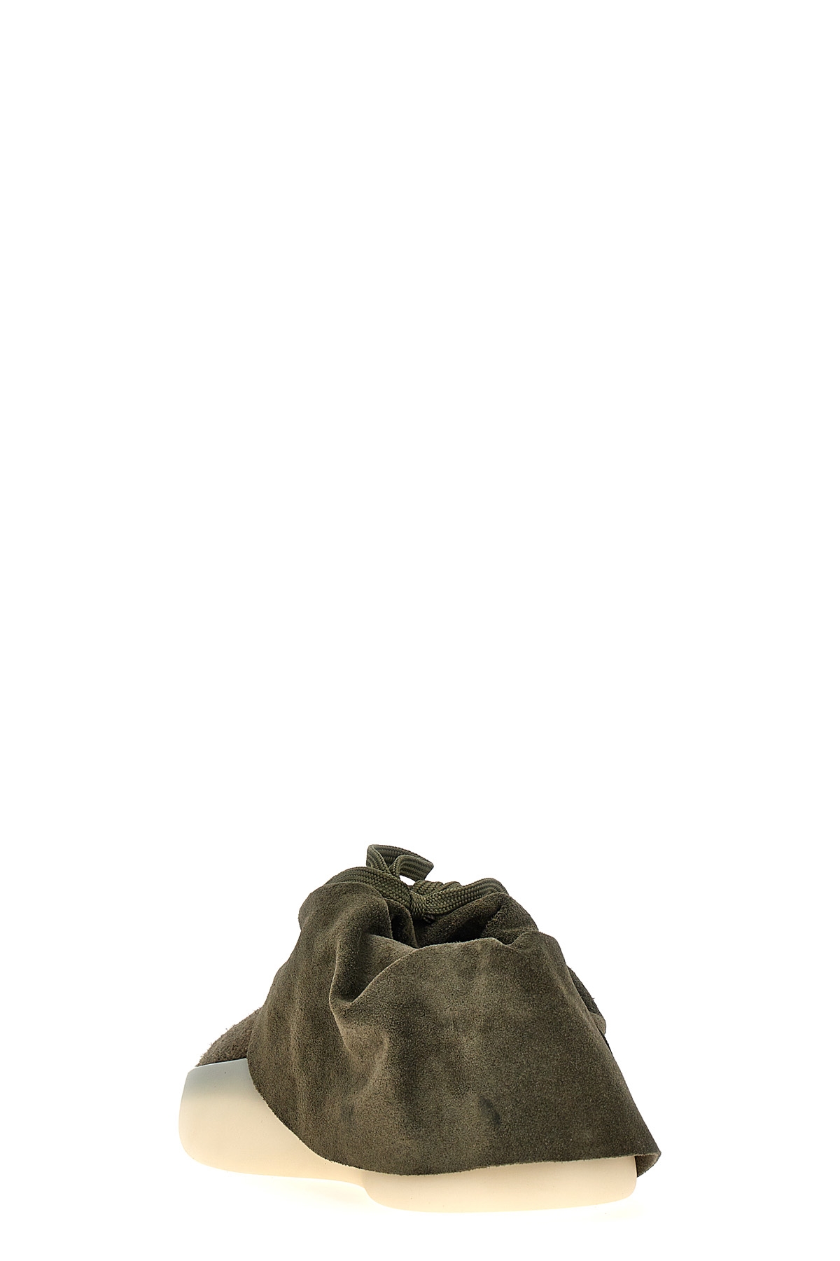 'Moc Lo' suede sneakers with wide inverted collar, laces closure, rubber sole.