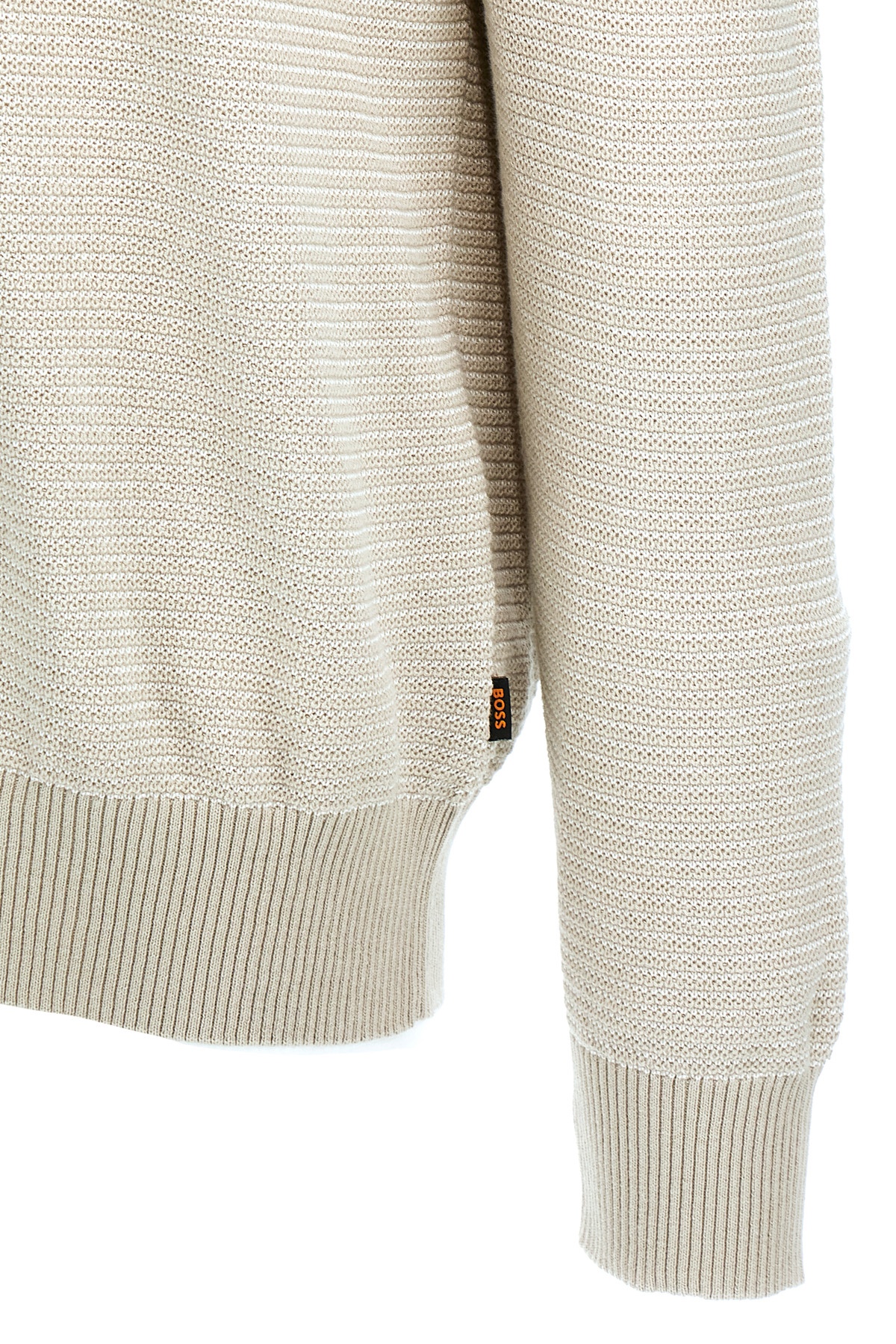 'Amercury' sweater in worked cotton blend, crew neck, long cuffed sleeves.