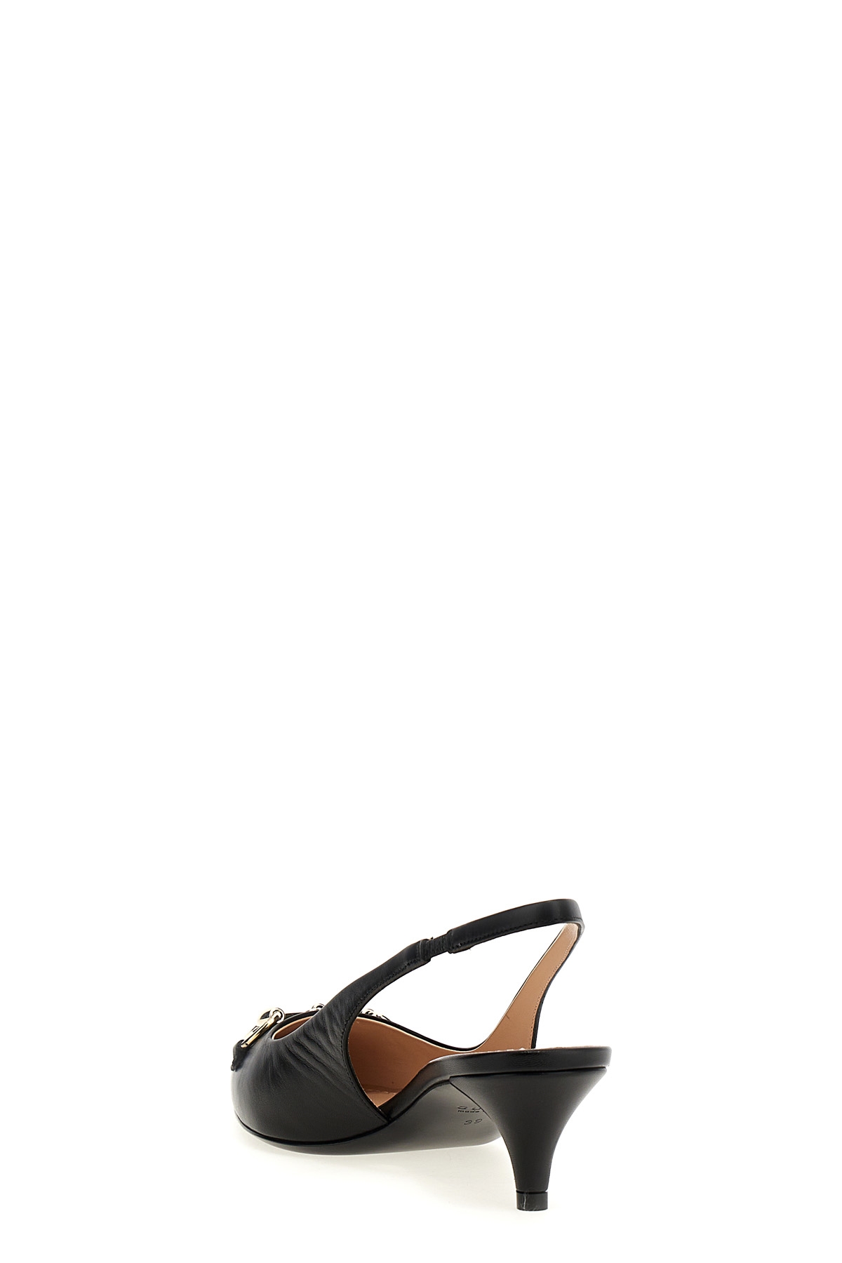 Leather slingbacks with front 'Morsetto' applique, elastic strap, heel.