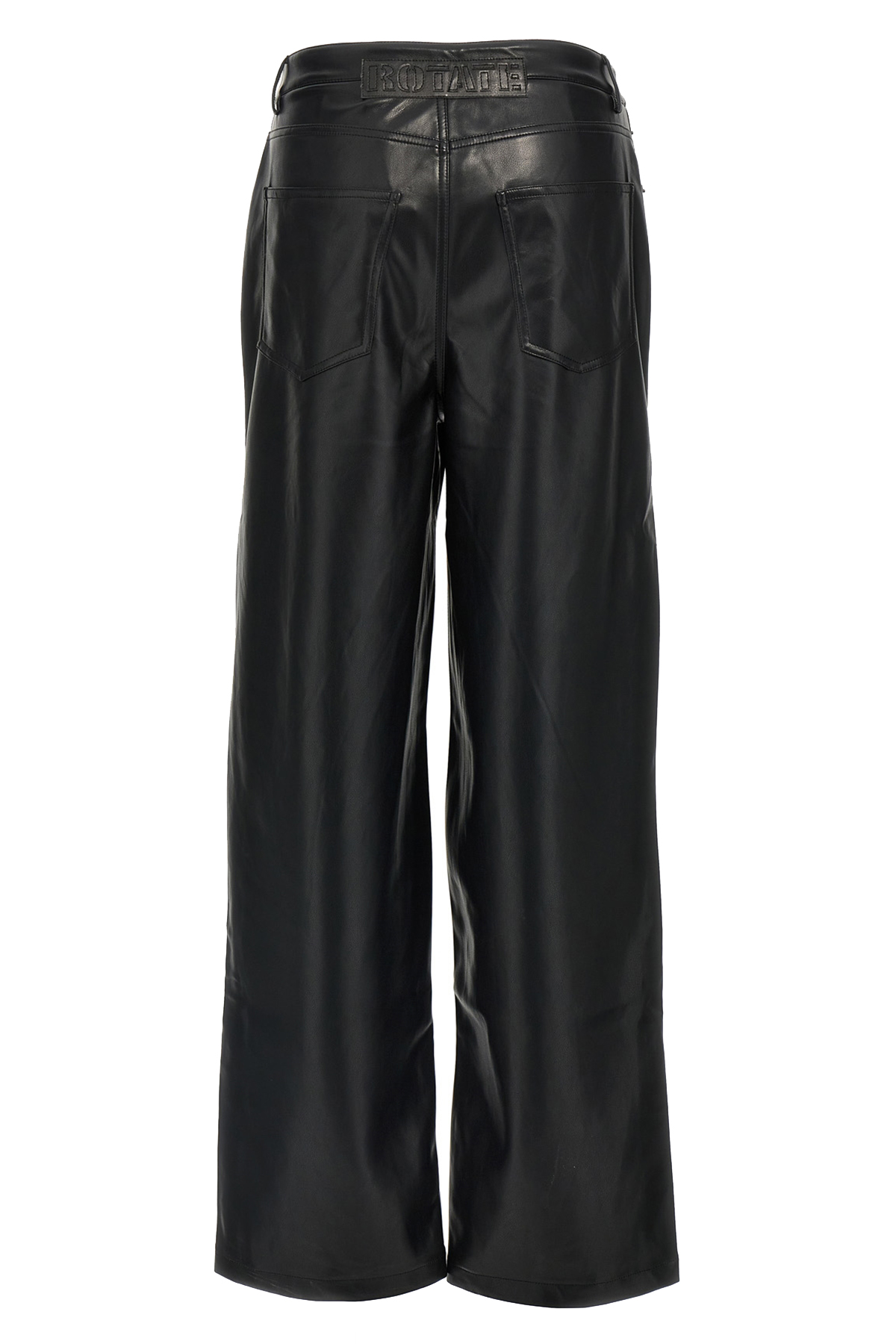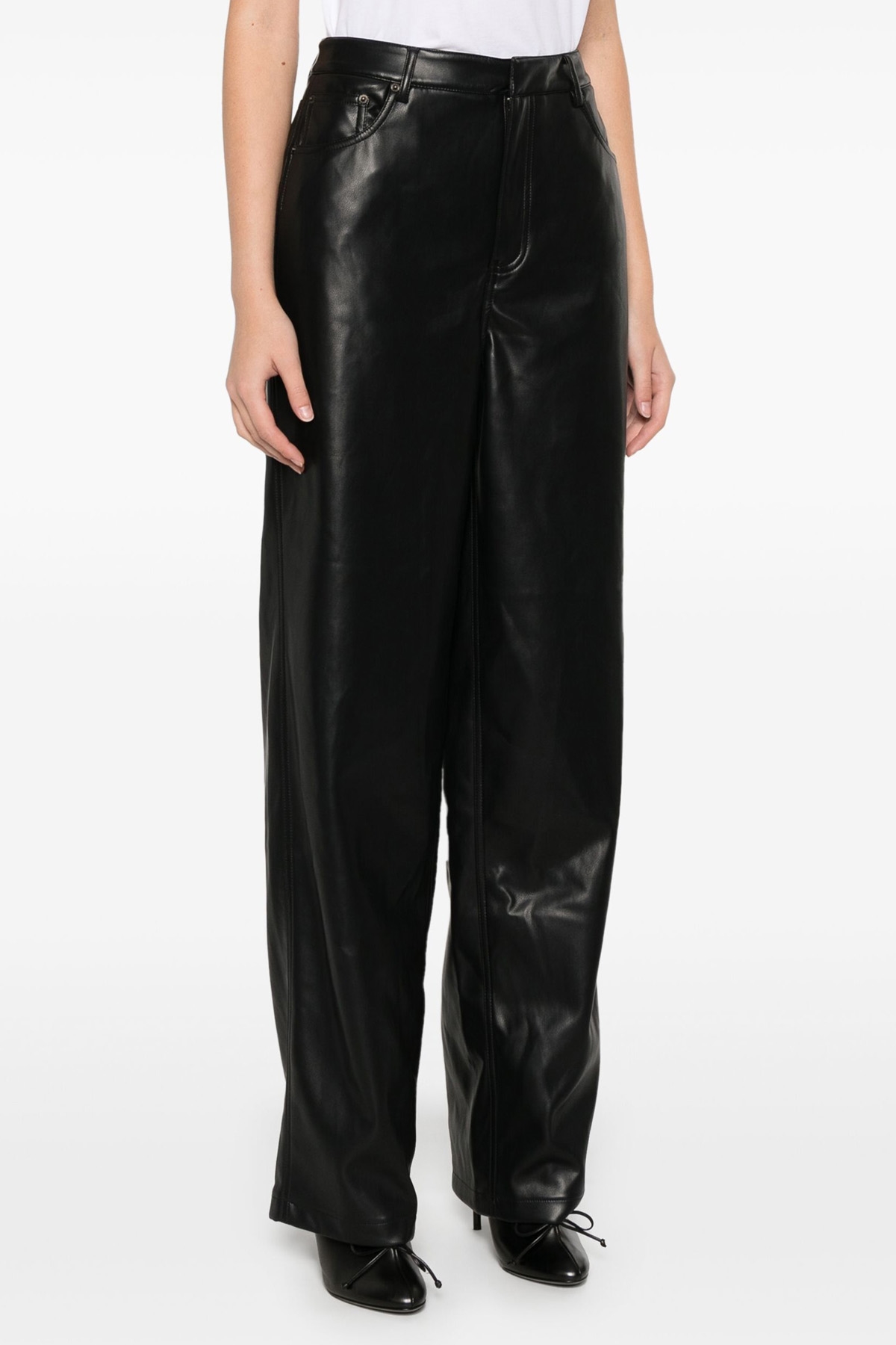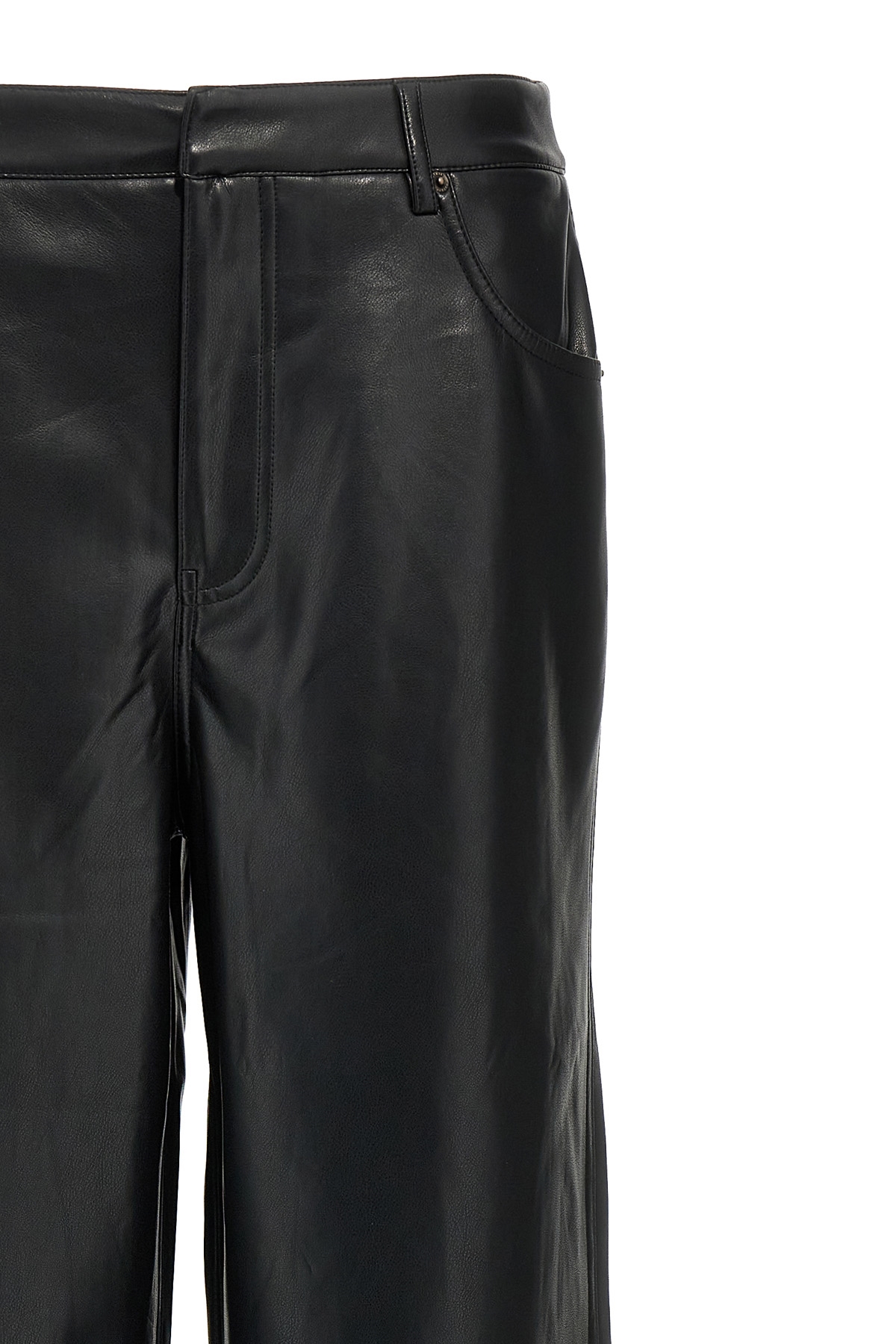 Five-pocket leather-effect fabric pants with tone-on-tone back logo tag, hook and button zip closure, wide, straight leg.