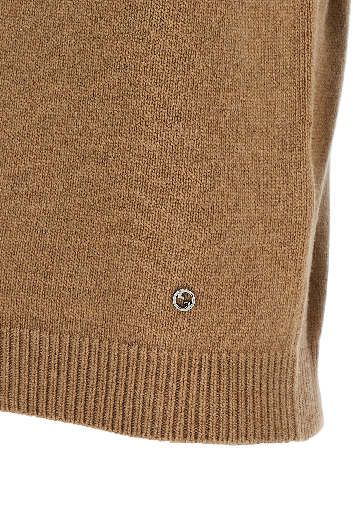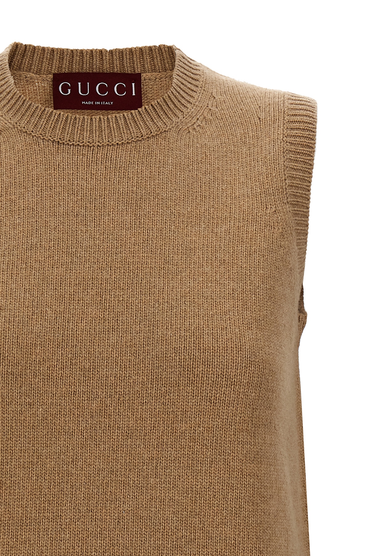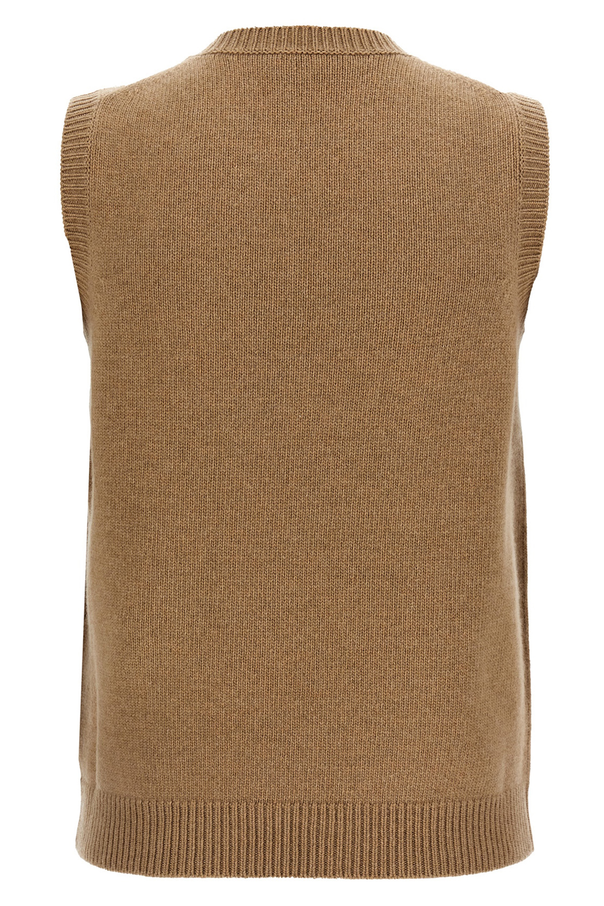 Wool and cashmere blend vest, crew neck, metal logo plaque.