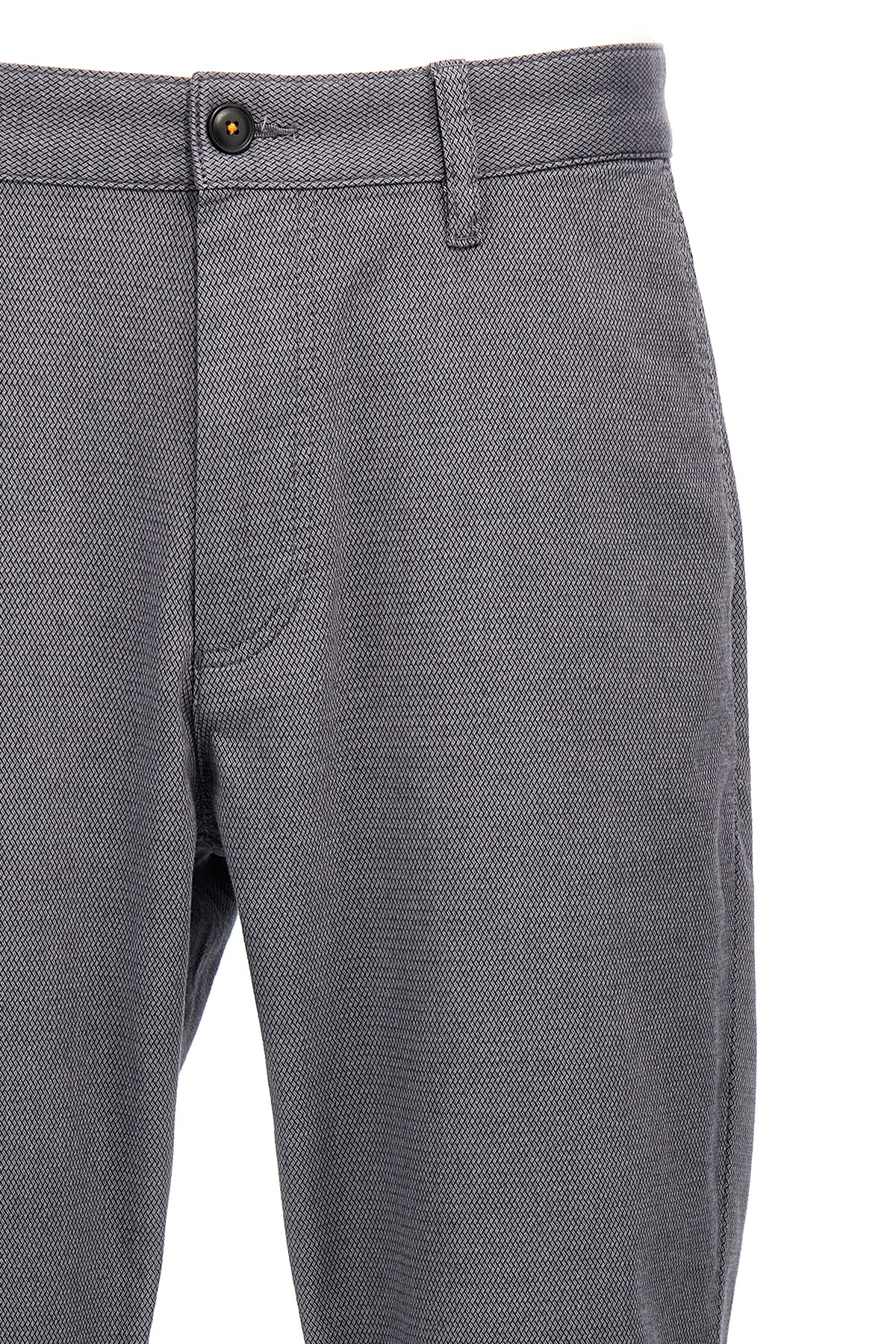 Stretch cotton pants with micro geometric pattern, chino, pockets, zip and button closure.