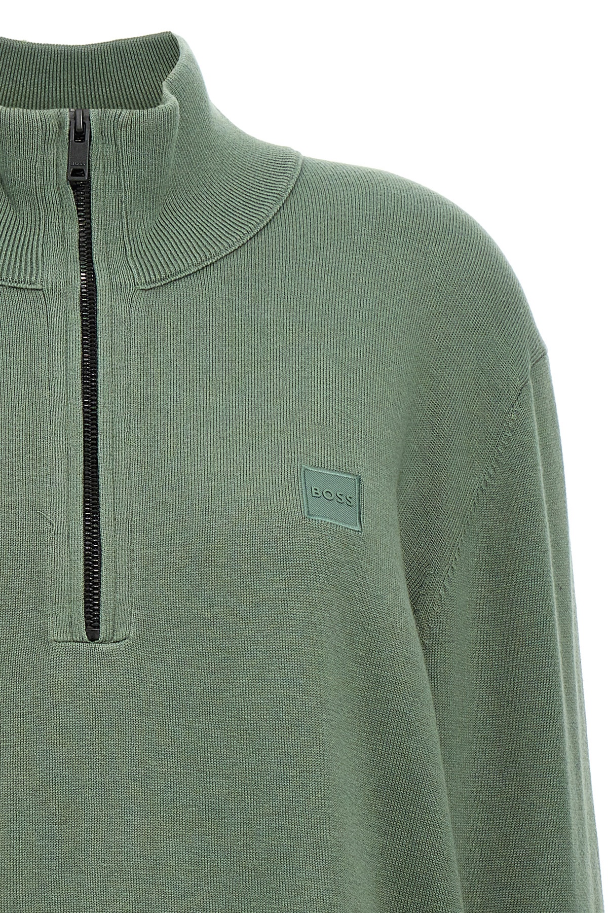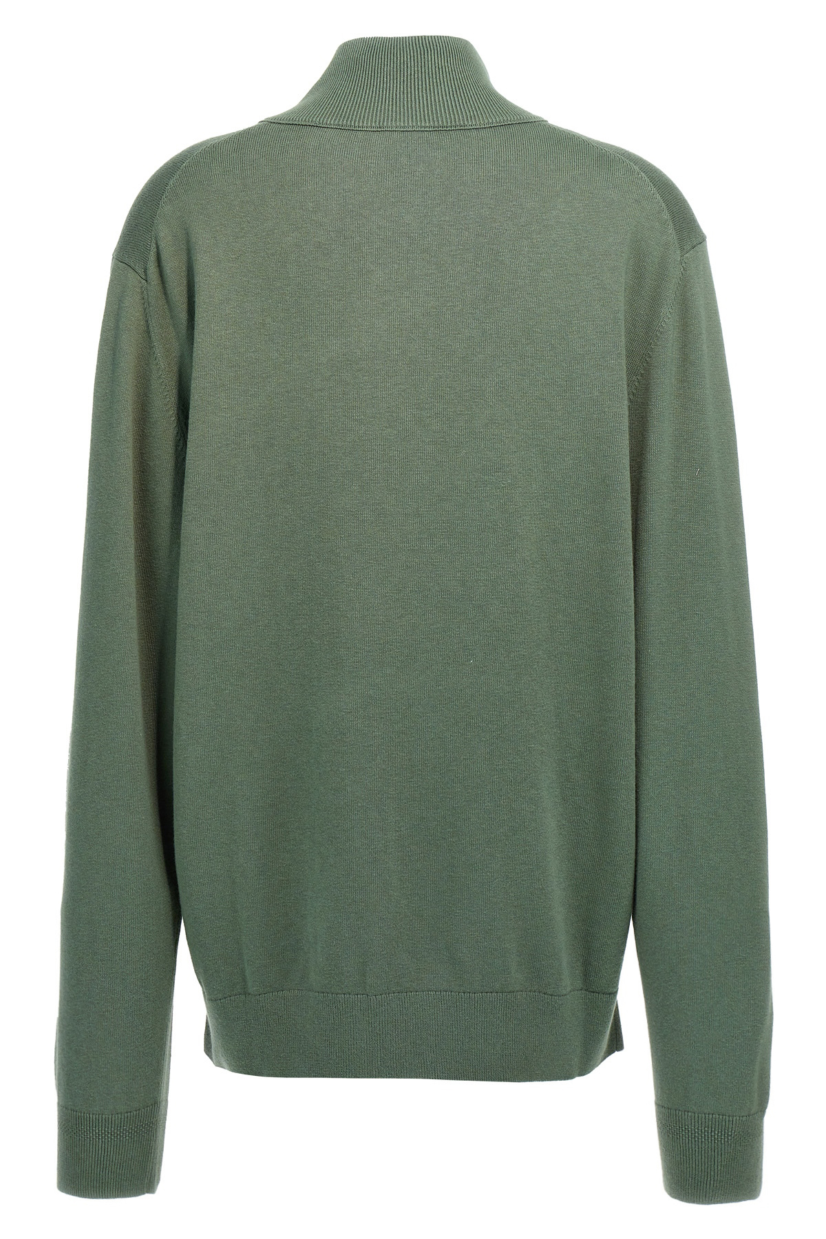 'Kanobix' cotton and cashmere blend knit sweater, front logo patch, half zip, high neck, long cuffed sleeves.