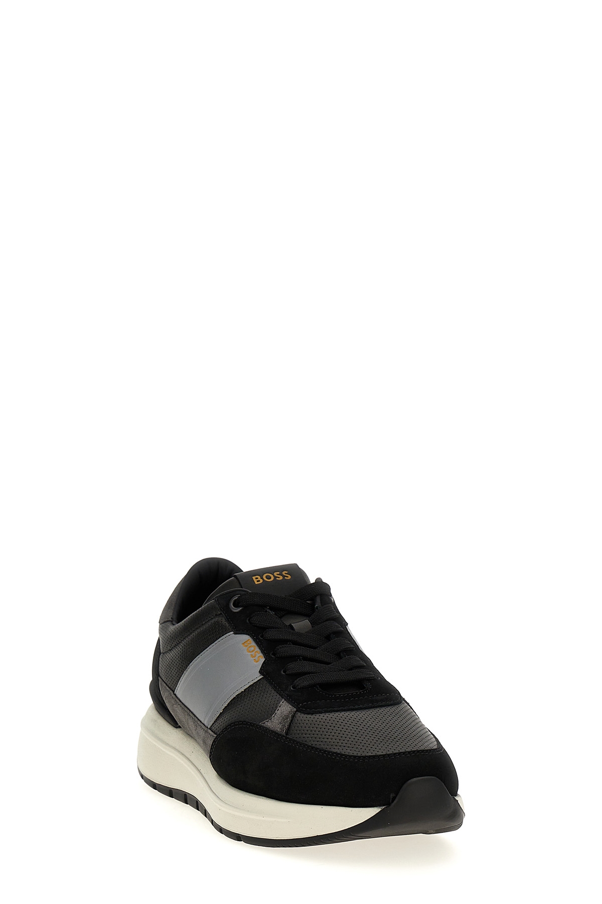 'Jace' openwork leather sneakers with suede details, contrast logo print, lace-up closure, rubber sole.