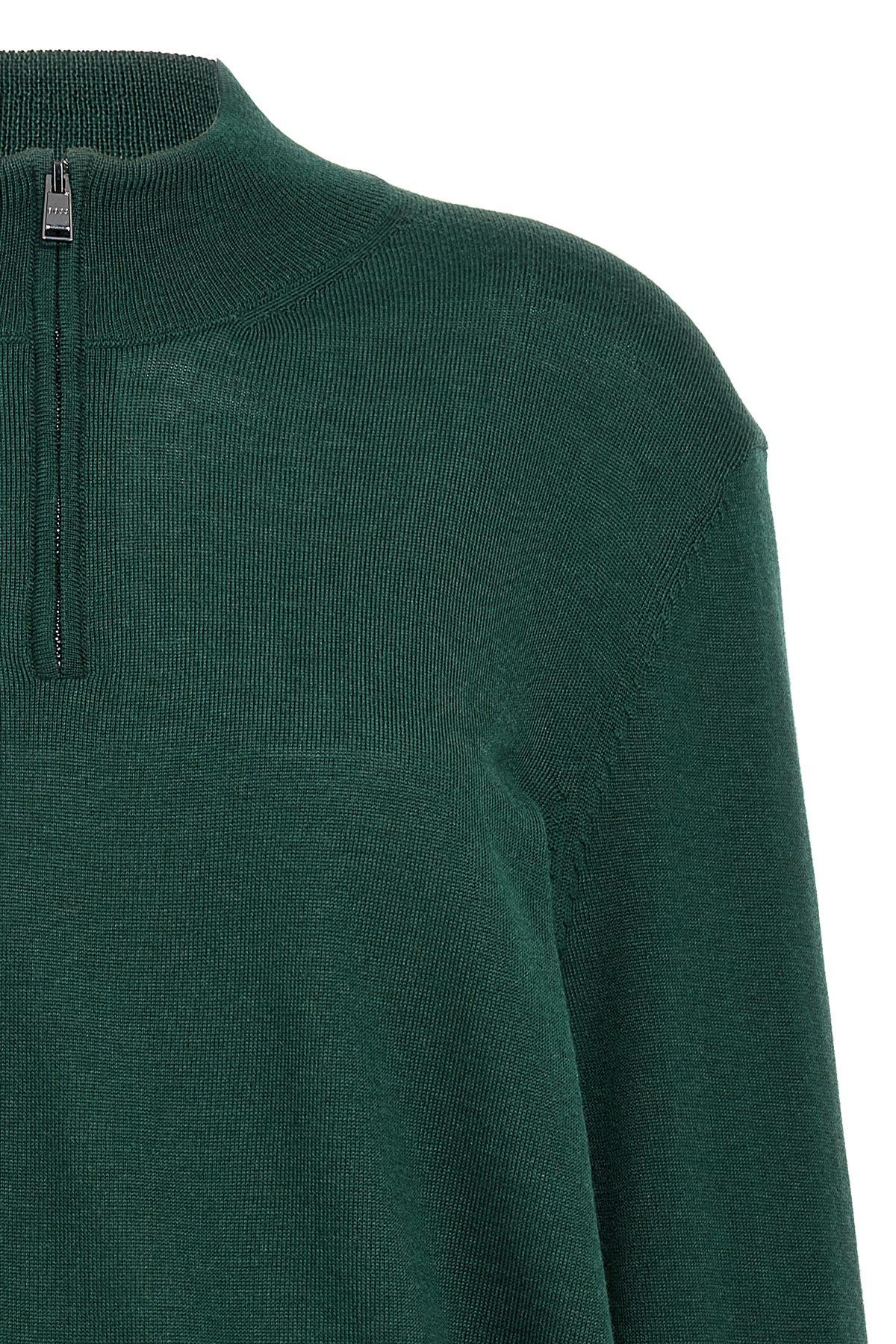 Virgin wool 'Ebenji' sweater with half zip, long cuffed sleeves. SUSTAINABLE: product made with wool from responsible farms.