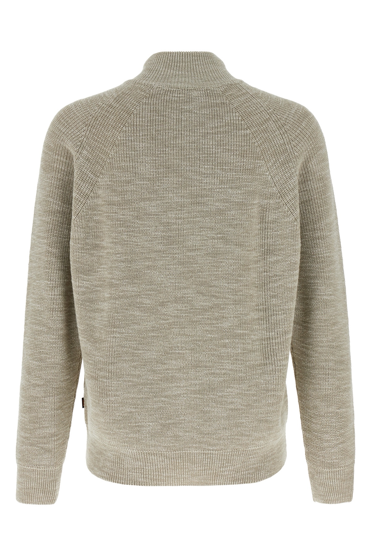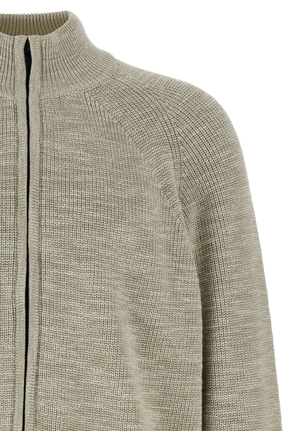 'Kenion' cotton blend knit cardigan with zip closure, long sleeves.
