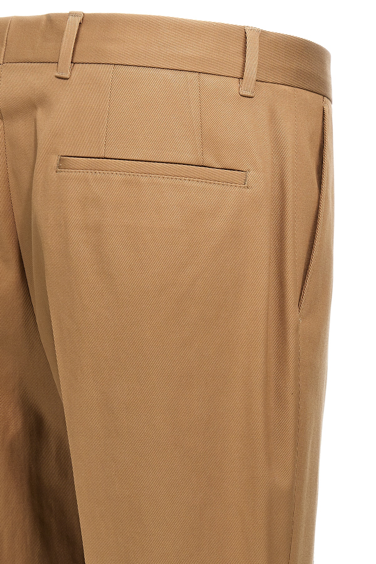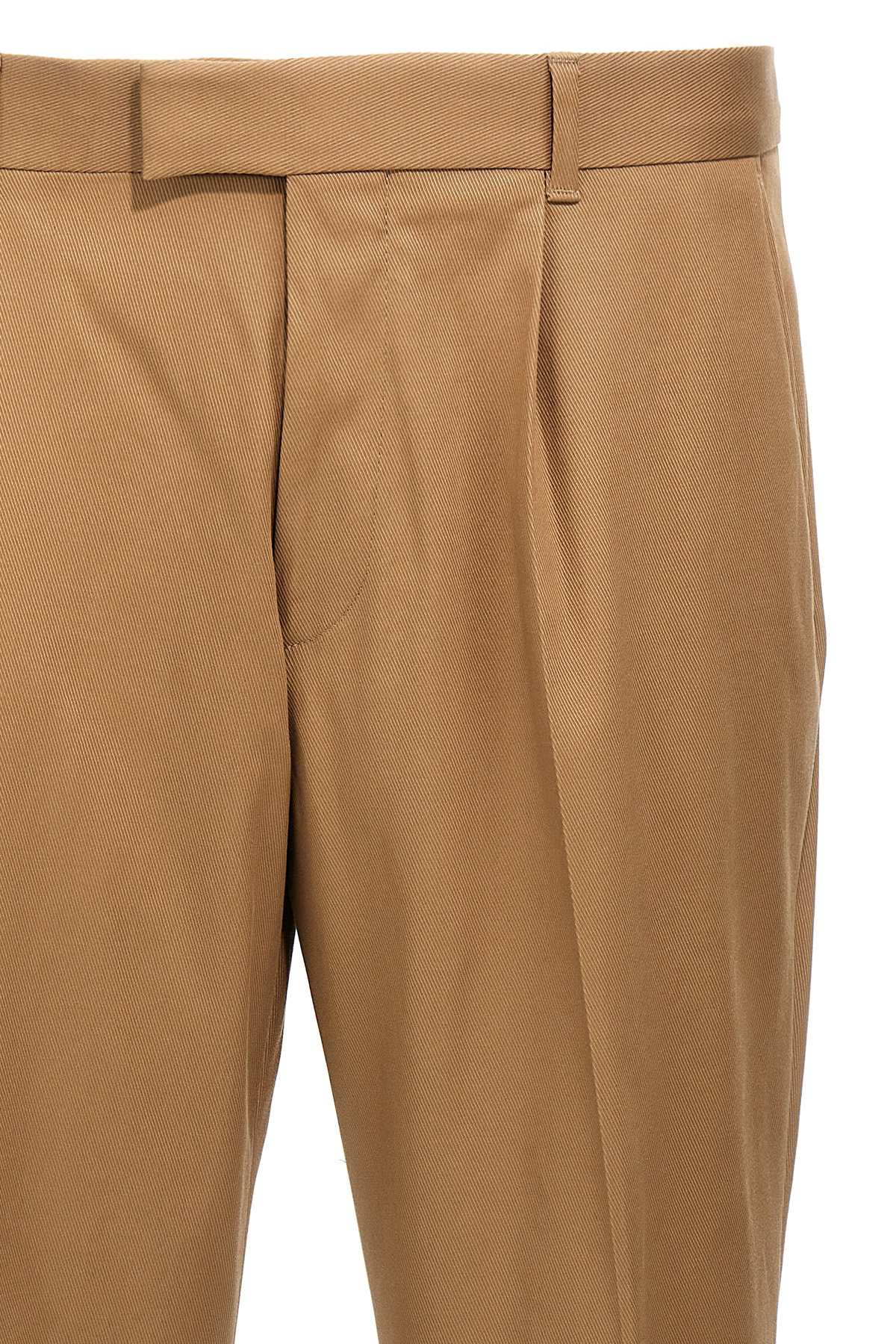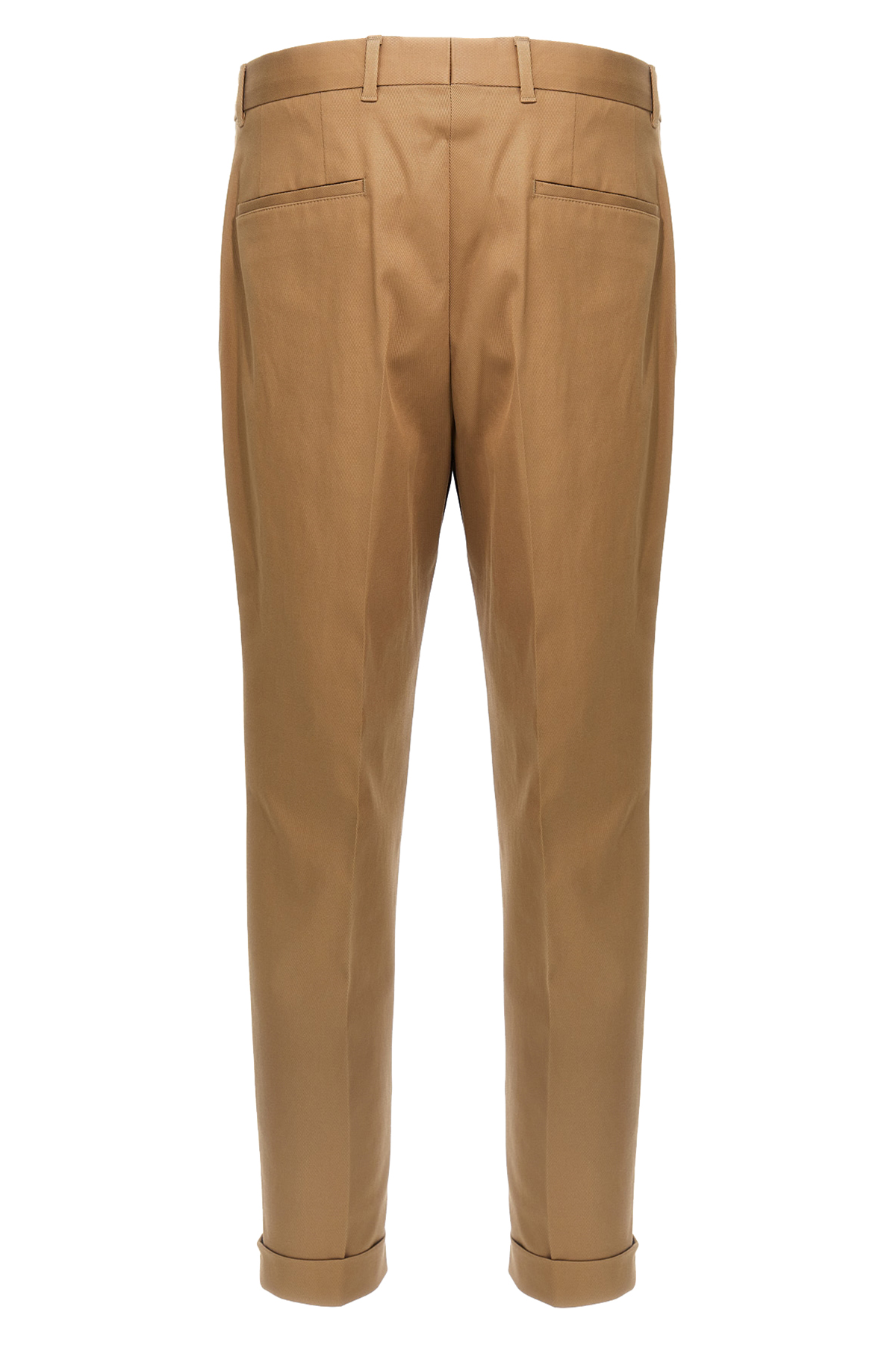 'Pepe' pants in stretch cotton blend fabric, zip and hook closure, pockets, straight leg with pleat and stretched pleat, turned-up hem.