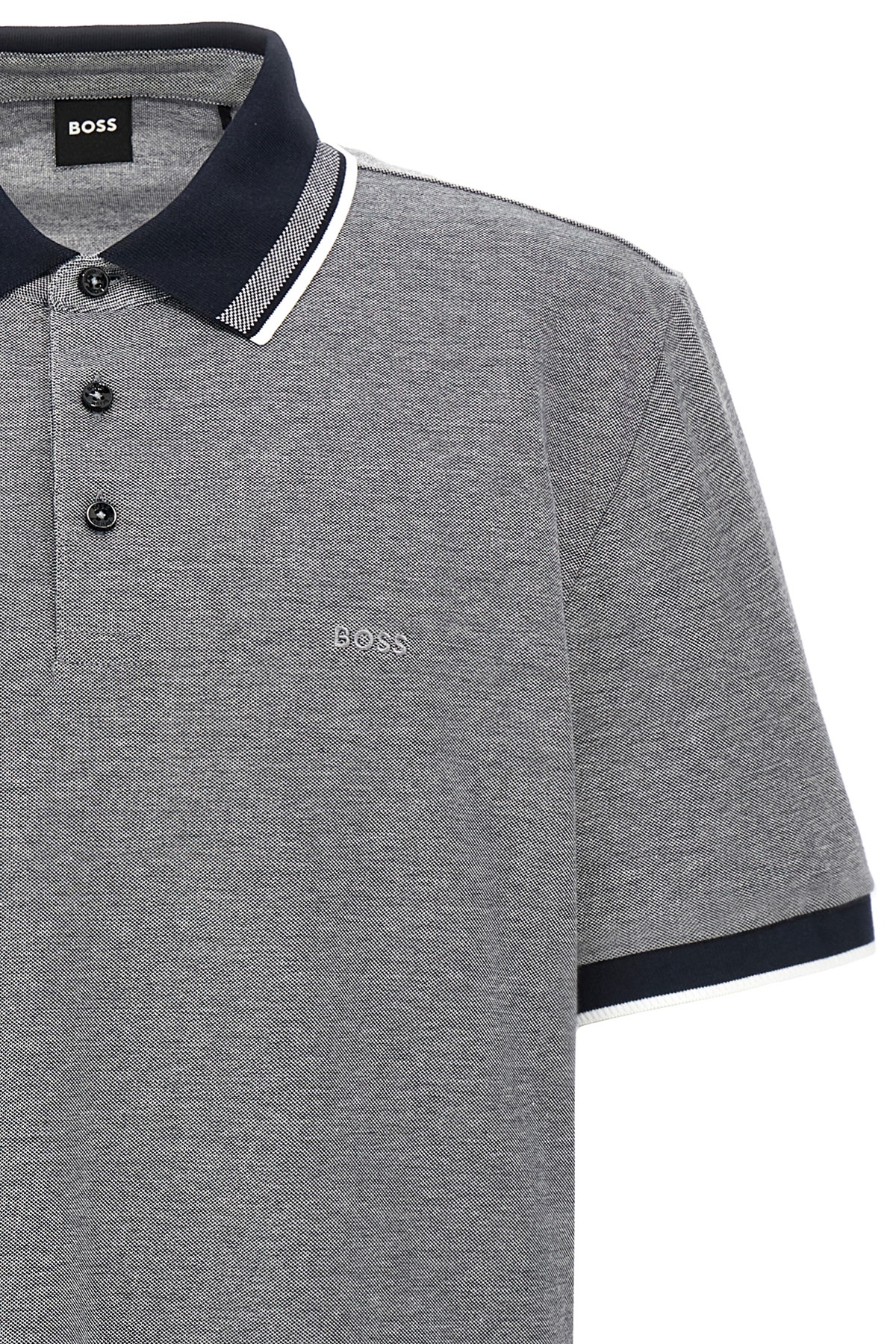 'Prout 141' polo shirt in Melange Oxford pique cotton with contrast collar and buttons, front logo embroidery, short sleeves, side vents. SUSTAINABLE: This product is made with organic cotton.
