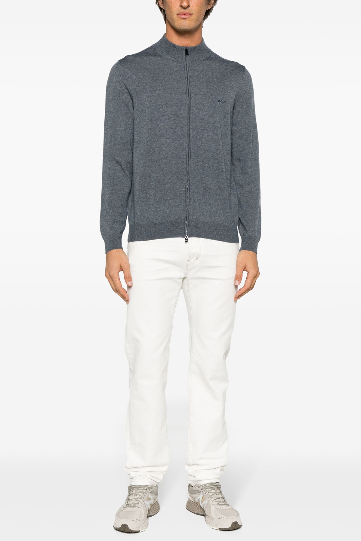 Virgin wool Balonso L cardigan with tone-on-tone embroidered logo on the front, zip closure, and long cuffed sleeves. SUSTAINABLE: product made with wool from responsible farms.