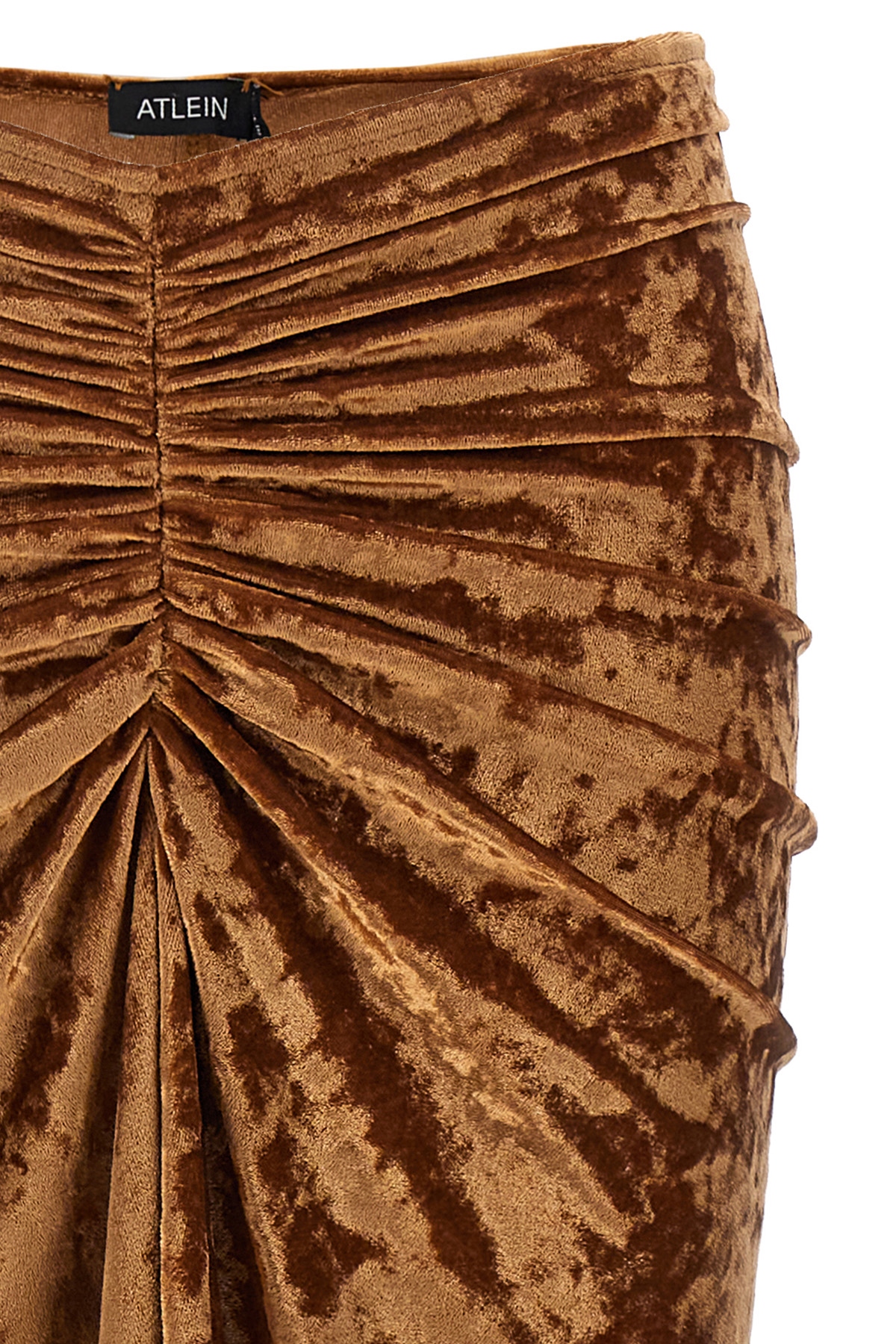 'Crushed Velvet' long skirt in velvet, with draped detail..